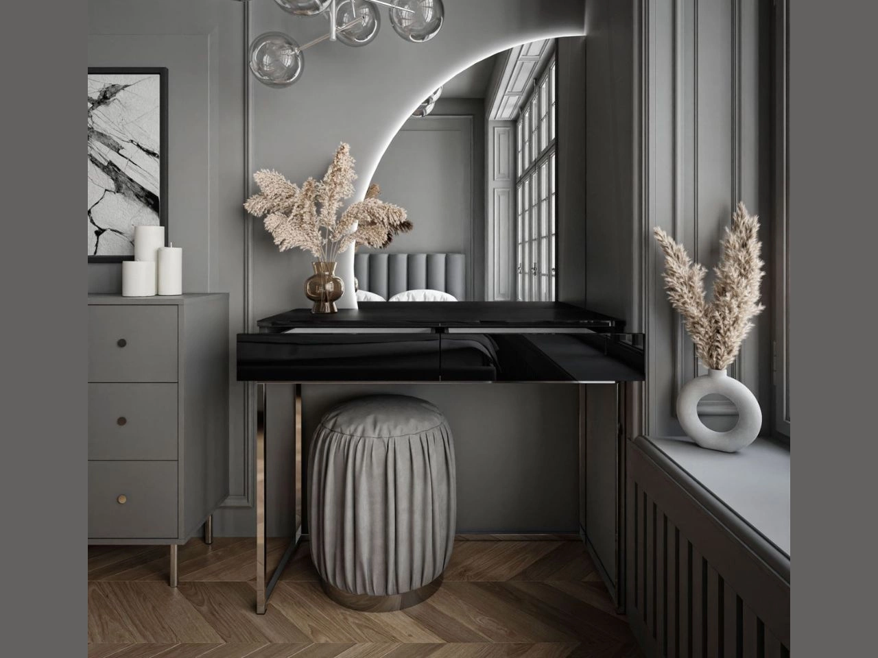 Suchen Sie ein Möbelstück, das Eleganz, Funktionalität und modernen Charakter vereint? Die Toilettentisch Clarette mit Spiegel und LED-Beleuchtung ist die ideale Lösung für alle, die minimalistisches Design und praktische Details schätzen. Ihre subtile Form und dekorative Verarbeitung machen sie perfekt für moderne, glamouröse oder skandinavische Einrichtungen und verleihen dem Raum einen einzigartigen Stil.