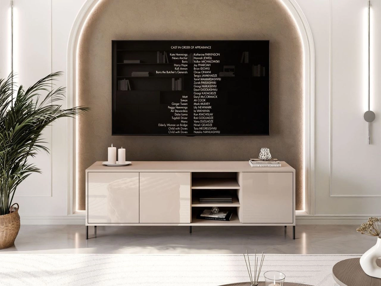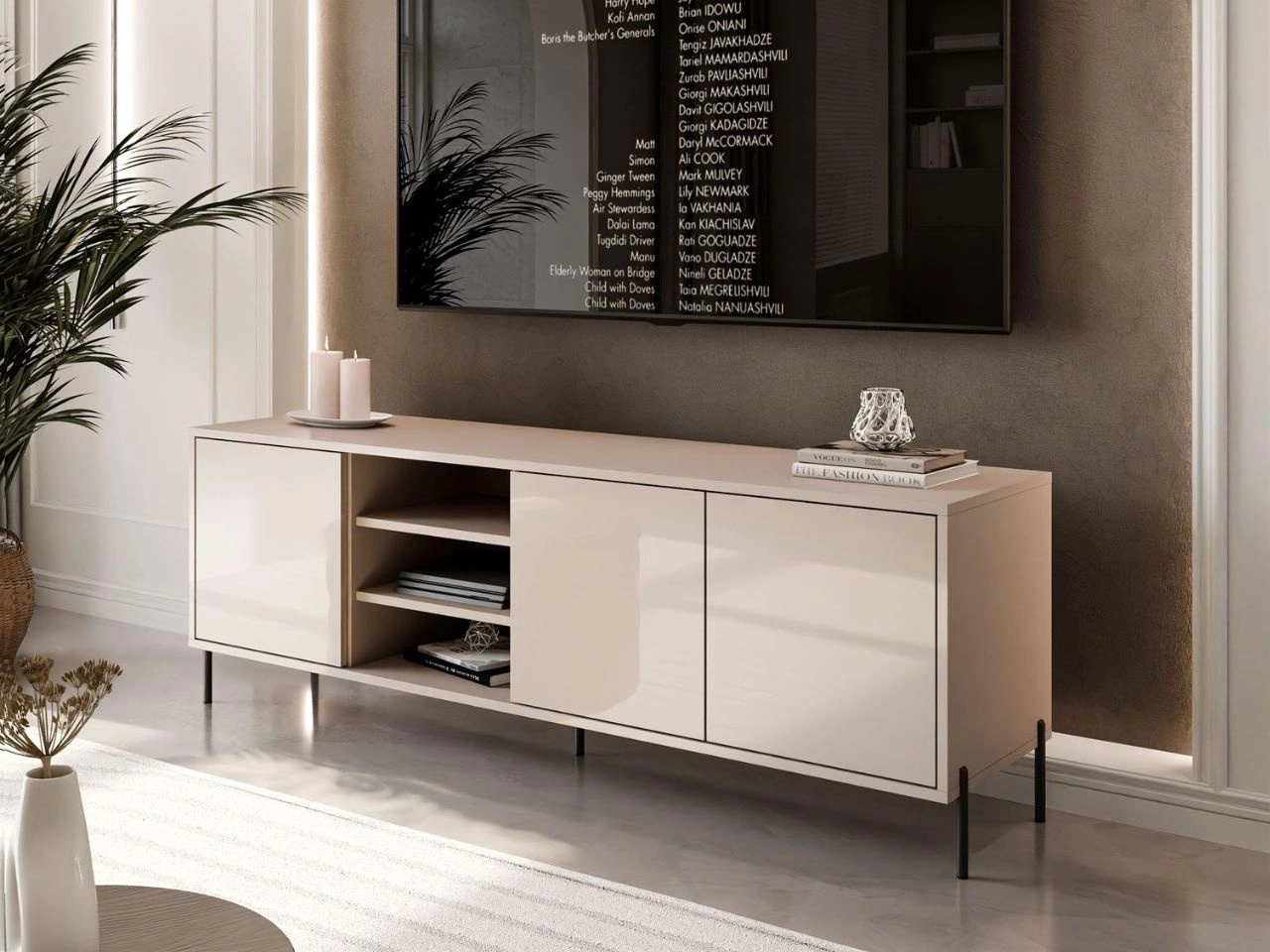 TV-Lowboard Glamour mit Türen schwarze Beine Vivance Kaschmir Hochglanz