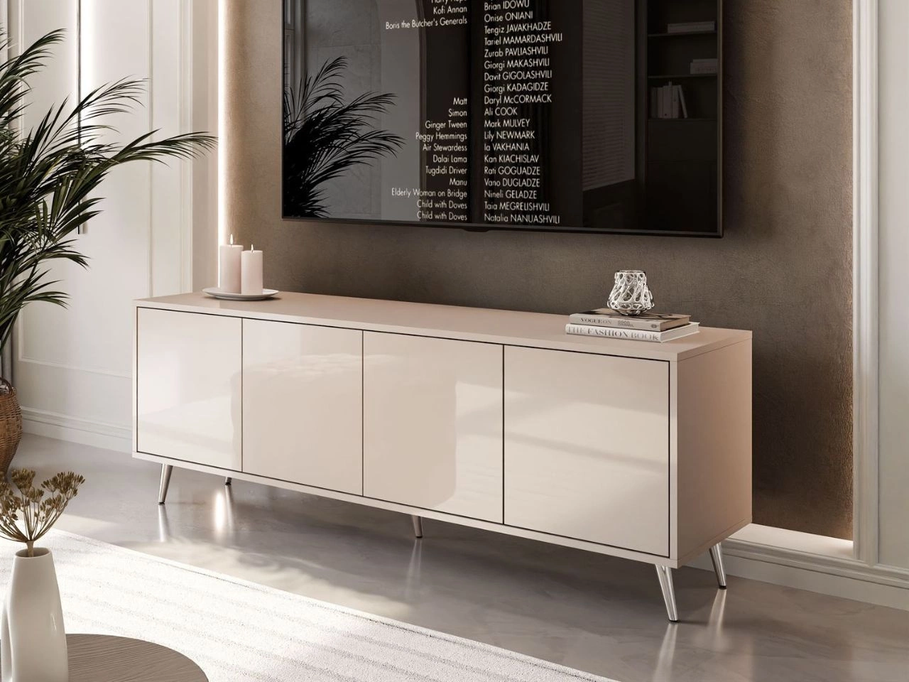 TV-Lowboard mit Türen auf silbernen Füßen Vivance, Kaschmir Hochglanz