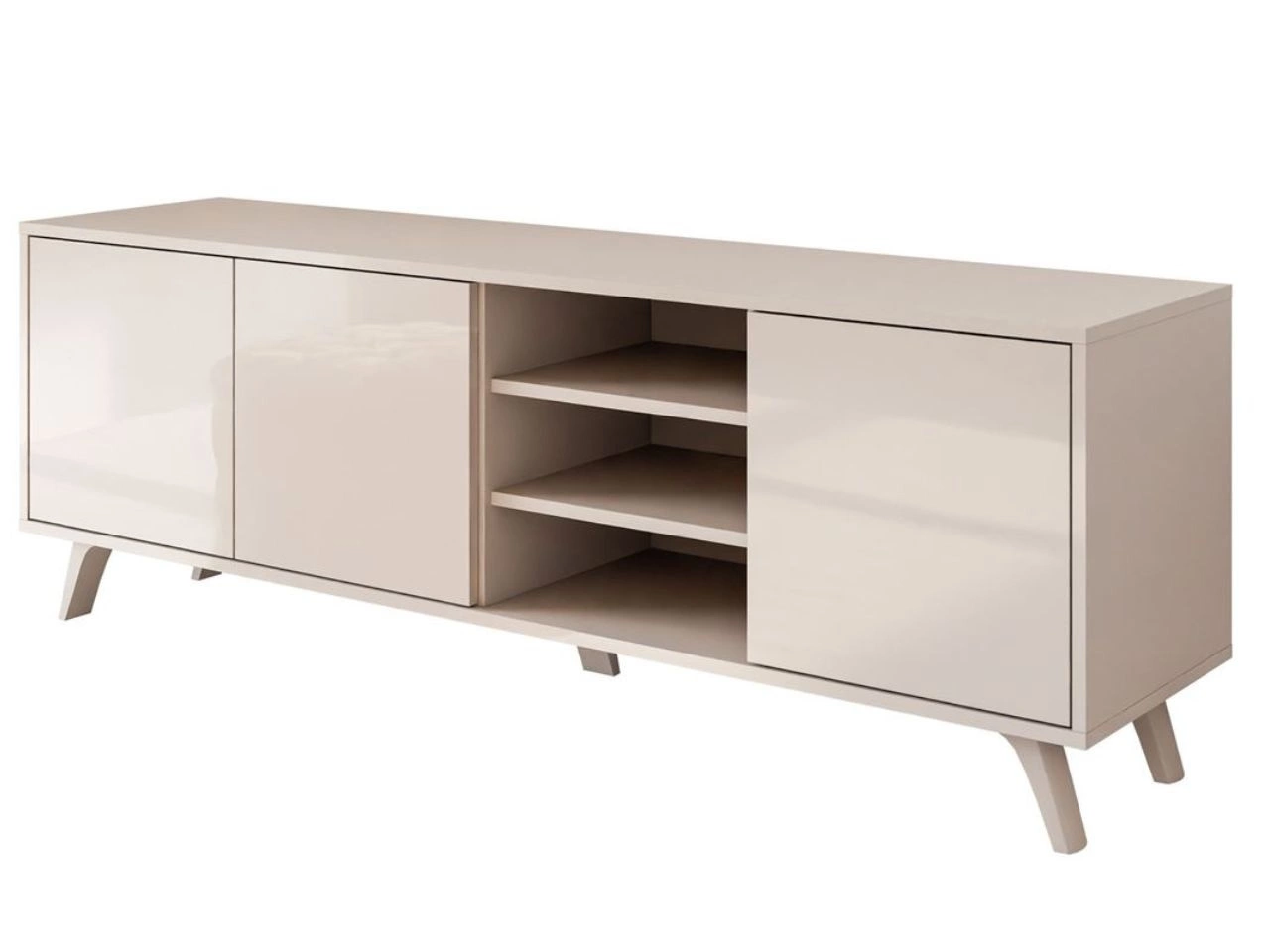 TV-Lowboard mit Türen auf kaschmirfarbenen Füßen Vivance Kaschmir Hochglanz