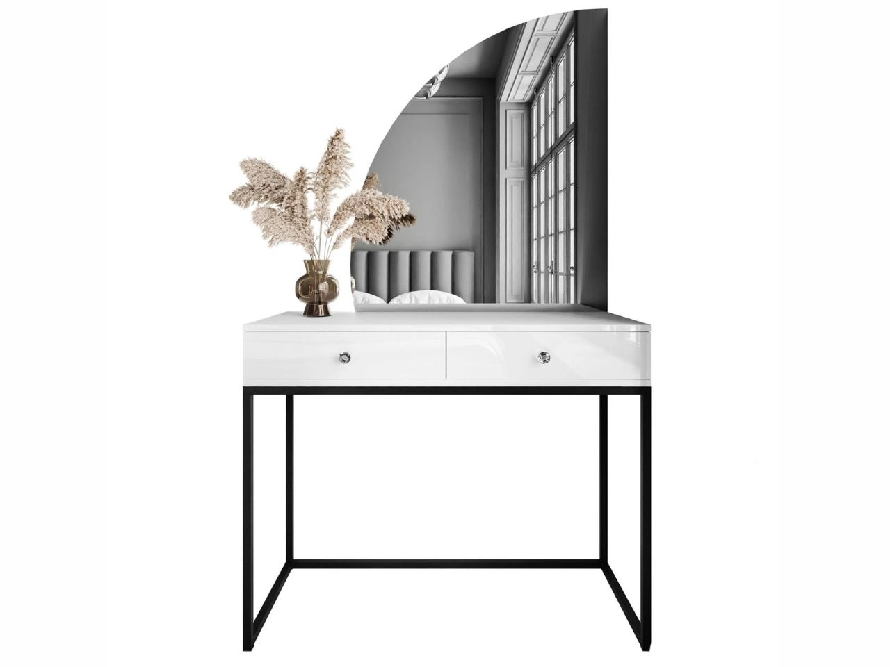 Ausgestattet mit zwei geräumigen Schubladen mit Kristallgriffen, die auf kugelgelagerten Vollauszügen laufen, ermöglicht der Toilettentisch Clarette die komfortable Aufbewahrung von Kosmetika, Accessoires und Kleinigkeiten und erleichtert die Ordnung. Das stabile Gestell in eleganter Ausführung unterstreicht die Leichtigkeit der Konstruktion und bringt zugleich eine Note von Luxus und Harmonie in den Raum. Die ideale Wahl für alle, die Ästhetik mit Funktionalität verbinden möchten.