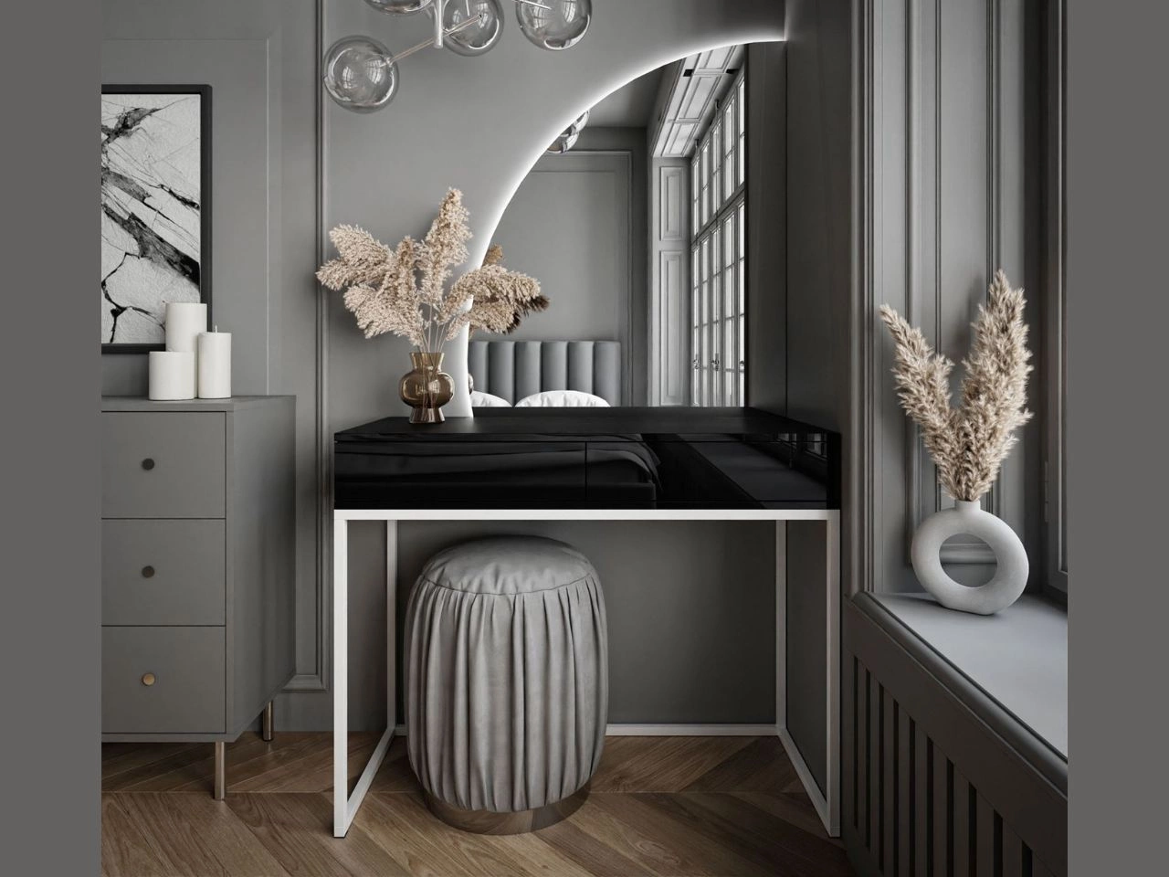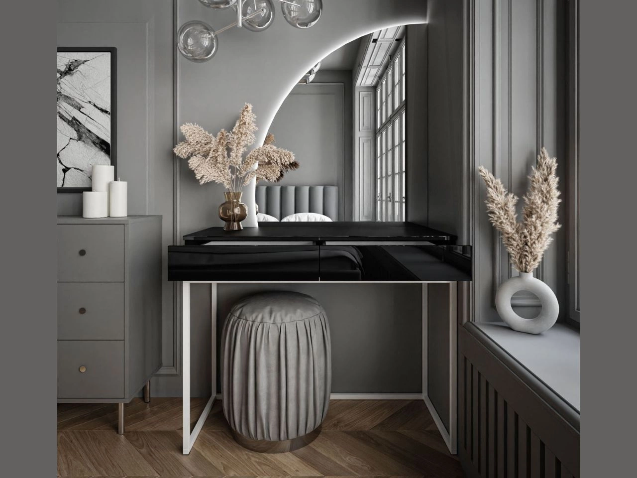 Suchen Sie ein Möbelstück, das Eleganz, Funktionalität und modernen Charakter vereint? Die Toilettentisch Clarette mit Spiegel und LED-Beleuchtung ist die ideale Lösung für alle, die minimalistisches Design und praktische Details schätzen. Ihre subtile Form und dekorative Verarbeitung machen sie perfekt für moderne, glamouröse oder skandinavische Einrichtungen und verleihen dem Raum einen einzigartigen Stil.