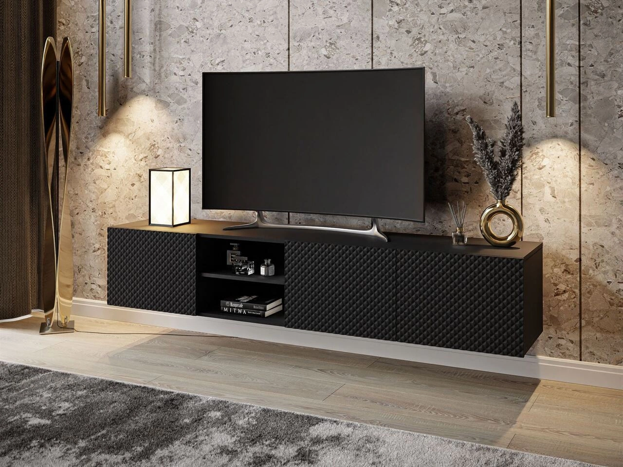 Hängender TV-Schrank mit 3D-gefrästen Fronten Celiane Schwarz matt