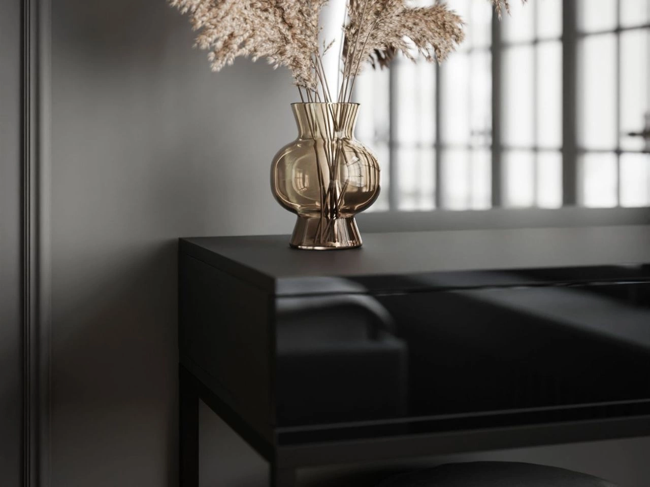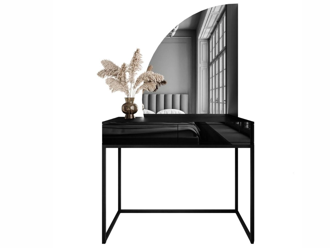 Kosmetiktisch linksseitig mit Schubladen und LED-Beleuchtung auf schwarzen Beinen Clarette Schwarz Hochglanz