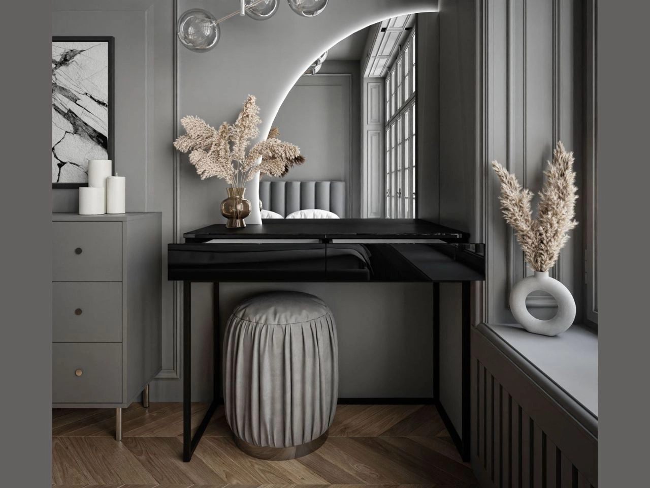 Suchen Sie ein Möbelstück, das Eleganz, Funktionalität und modernen Charakter vereint? Die Toilettentisch Clarette mit Spiegel und LED-Beleuchtung ist die ideale Lösung für alle, die minimalistisches Design und praktische Details schätzen. Ihre subtile Form und dekorative Verarbeitung machen sie perfekt für moderne, glamouröse oder skandinavische Einrichtungen und verleihen dem Raum einen einzigartigen Stil.