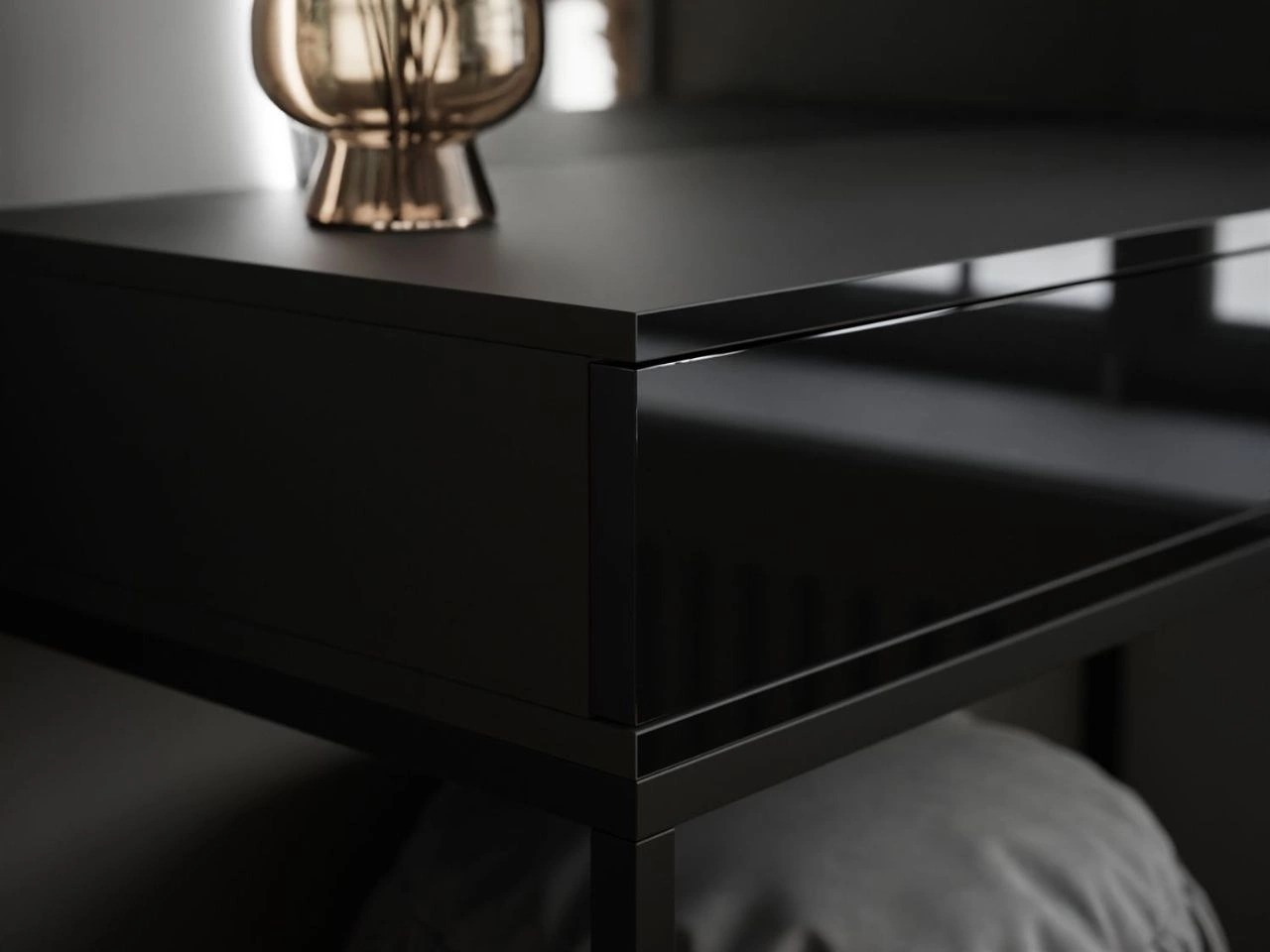 - Korpus aus mattschwarzer laminierter Platte, 16 mm