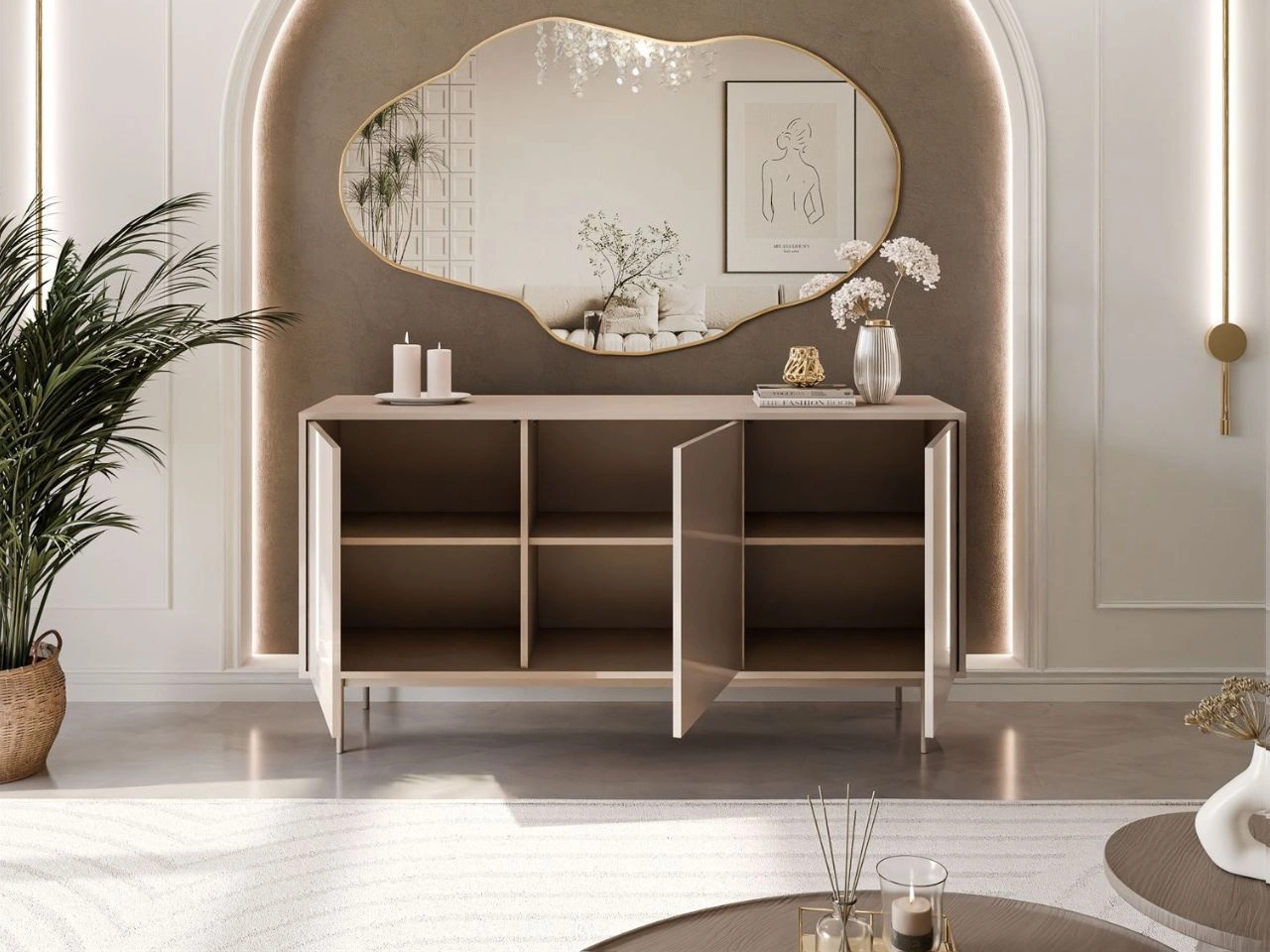Kommoden gehören zu den funktionalsten und zugleich stilvollsten Möbelstücken, die du in dein Zuhause holen kannst. Sie vereinen komfortablen Stauraum mit elegantem Design und werden dadurch zu einem unverzichtbaren Element jeder Einrichtung. Eine passend gewählte Kommode hilft nicht nur, die Ordnung zu bewahren, sondern verleiht dem Raum auch eine luxuriöse Note und schafft eine besondere Atmosphäre. Genau so ist die dreitürige Kommode Vivance.