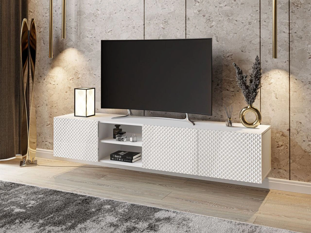 Hängender TV-Schrank mit 3D-gefrästen Fronten Celiane Weiß Glanz
