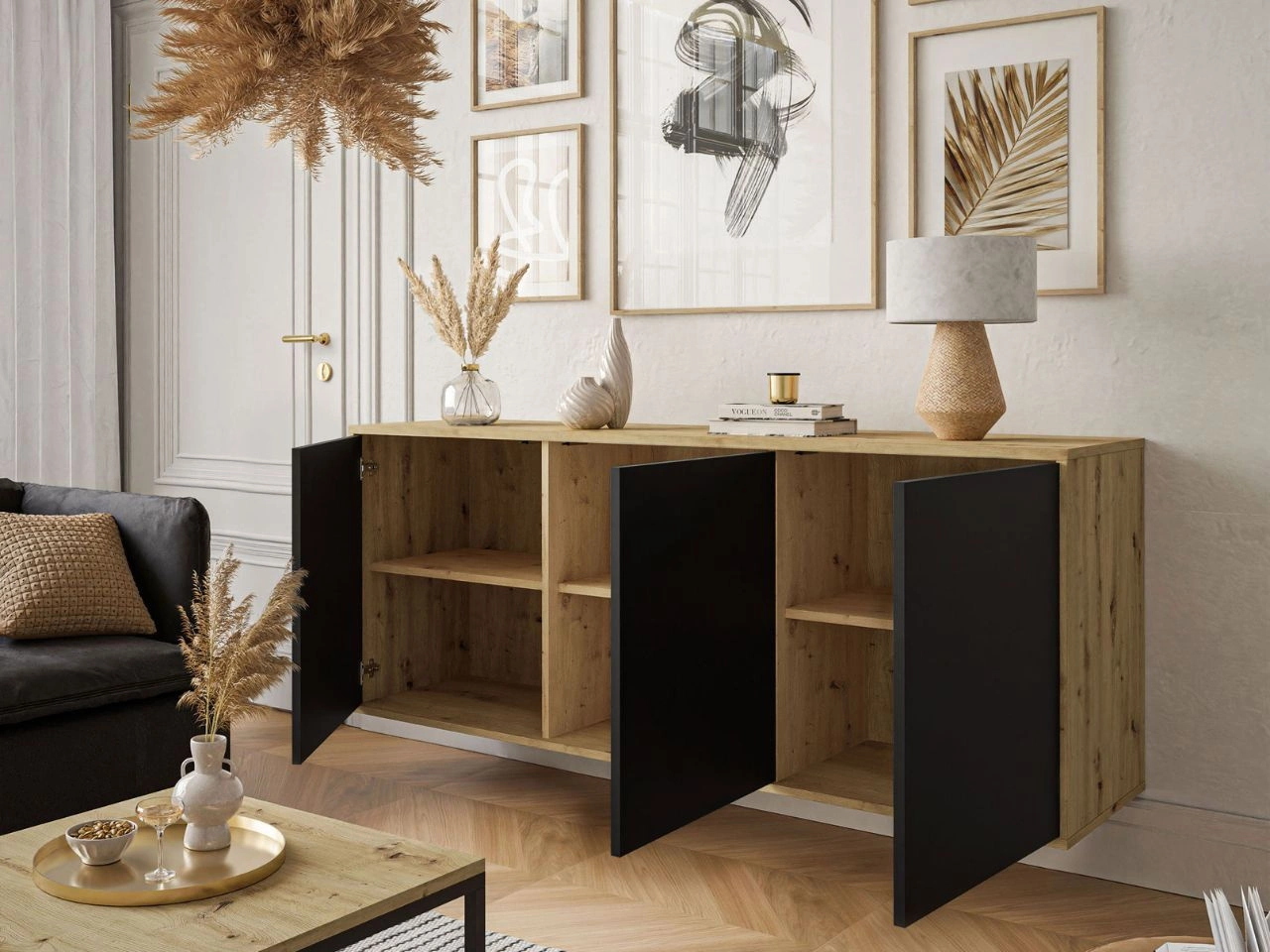 - Schwarz matt / Eiche Artisan
