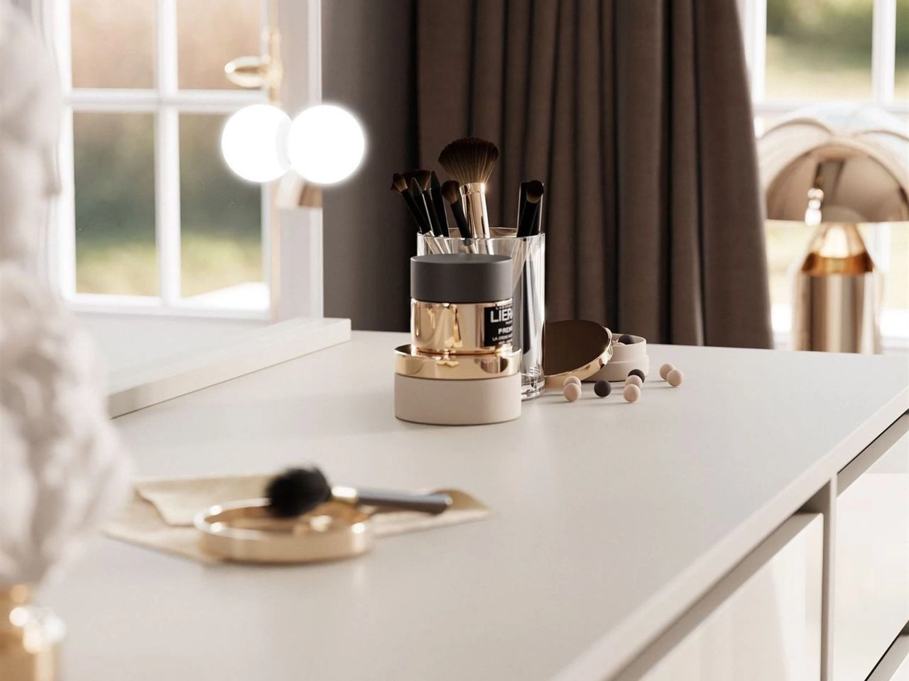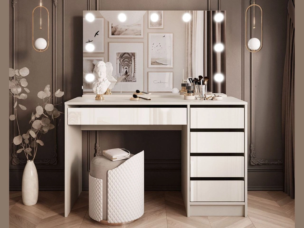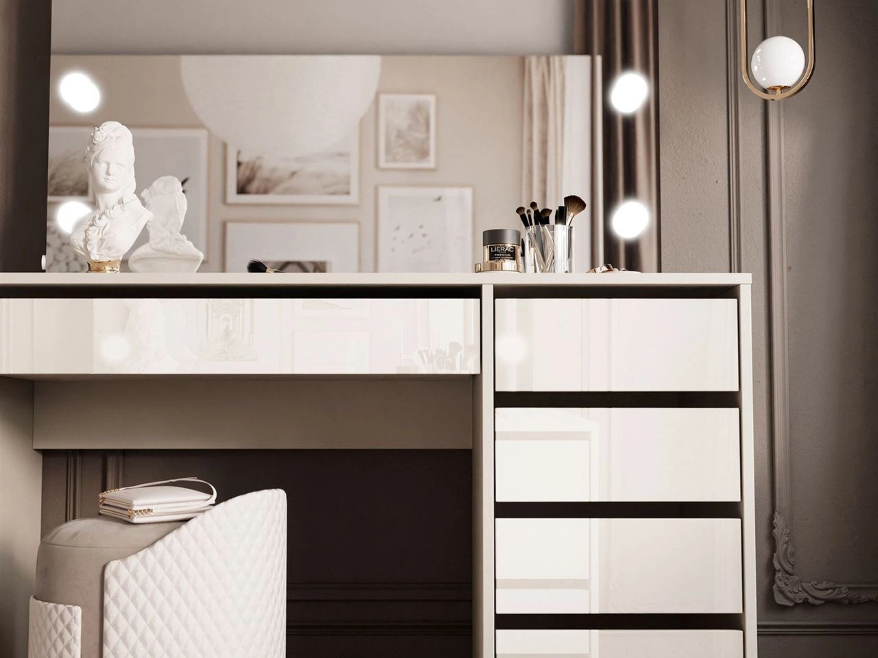 Schminktisch mit Spiegel, Schubladen und LED Melo Elite Kaschmir Hochglanz