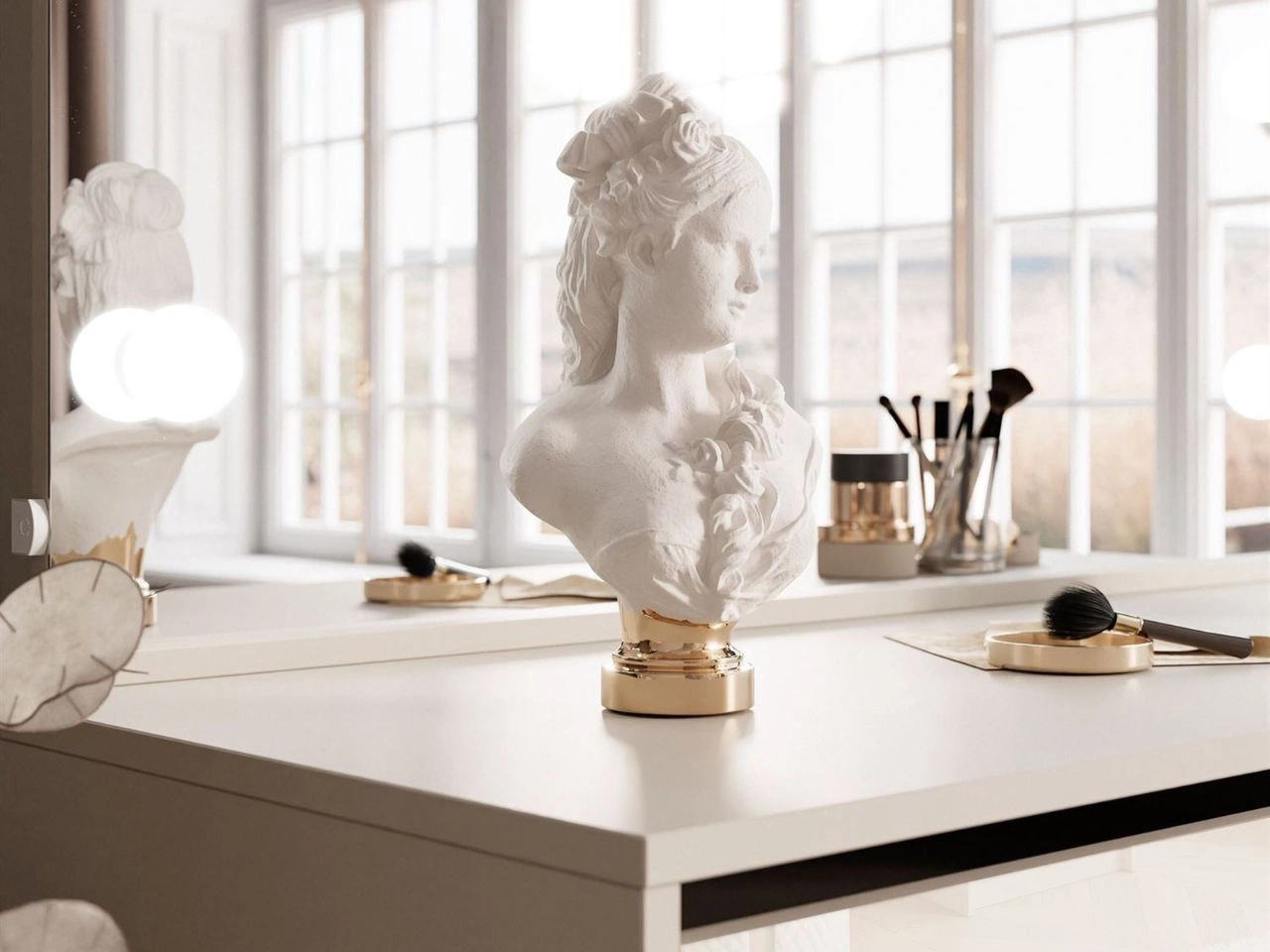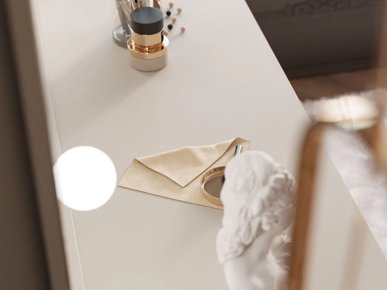 Der Schminktisch Melo Elite ist ein elegantes und funktionales Möbelstück, das sich perfekt für jedes Schlafzimmer eignet. Er schafft einen komfortablen Platz für die tägliche Pflege und das Make-up und bringt zugleich einen Hauch von Luxus und Harmonie in den Raum. Seine moderne Form und die sorgfältig ausgearbeiteten Details machen ihn zu einer idealen Wahl für alle, die sowohl Design als auch praktische Lösungen schätzen.