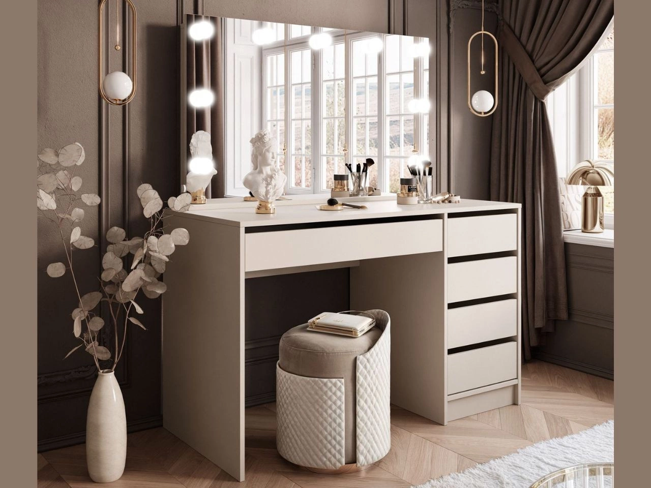 Schminktisch mit Spiegel, Schubladen und LED Melo Elite Kaschmir Matt