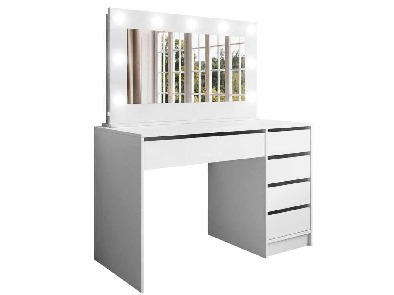 Schminktisch Glamour mit Spiegel, Schubladen und LED Melo Weiß Matt