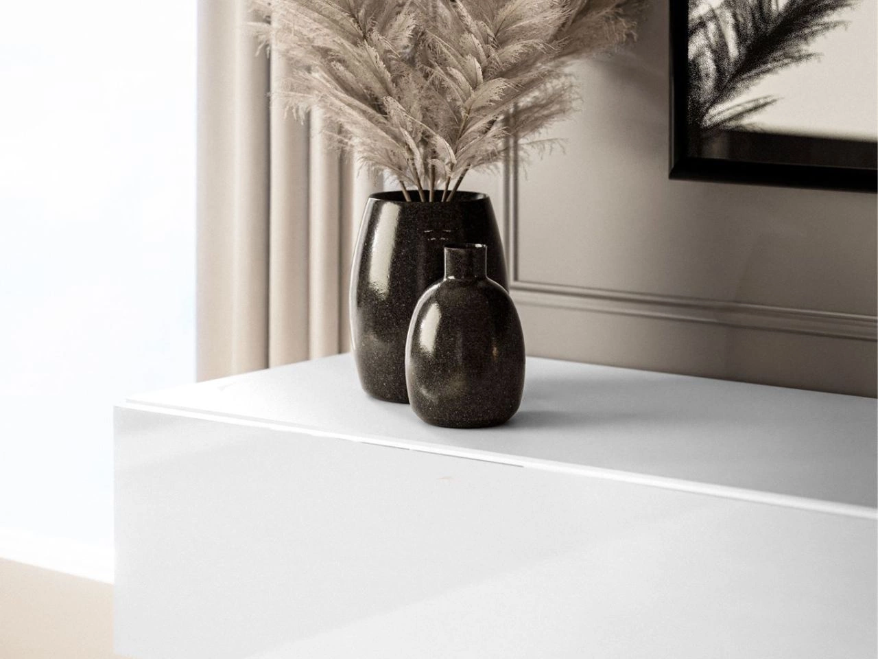 Gefertigt aus hochwertiger Laminatplatte und veredelt mit robusten ABS-Kanten, überzeugt das TV-Möbel durch Langlebigkeit und Stabilität. Das Korpus im edlen Matt harmoniert perfekt mit den Fronten in Weiß Hochglanz, wodurch ein spannender Kontrast aus Oberflächen entsteht. Dieses elegante Zusammenspiel bringt Helligkeit, Leichtigkeit und Raffinesse in jeden Wohnraum.