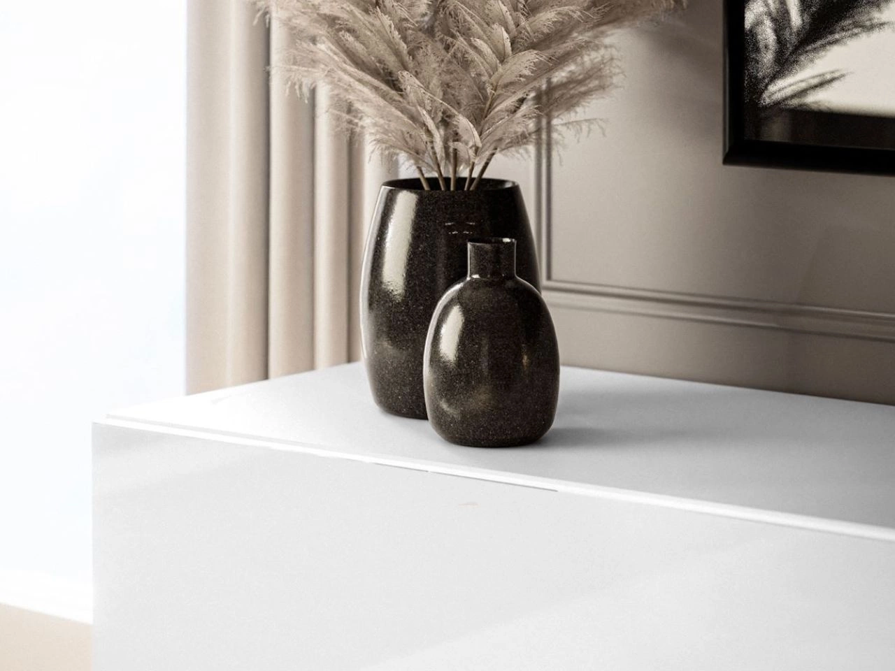 Das TV-Möbel Aurelie kombiniert einen matten Korpus mit weißen Hochglanzfronten und erzeugt so einen spannenden Materialkontrast, der jedem Wohnraum Helligkeit und Eleganz verleiht. Durch den Einsatz hochwertiger Laminatplatten und widerstandsfähiger ABS-Kanten überzeugt das Möbelstück zudem mit außergewöhnlicher Langlebigkeit.