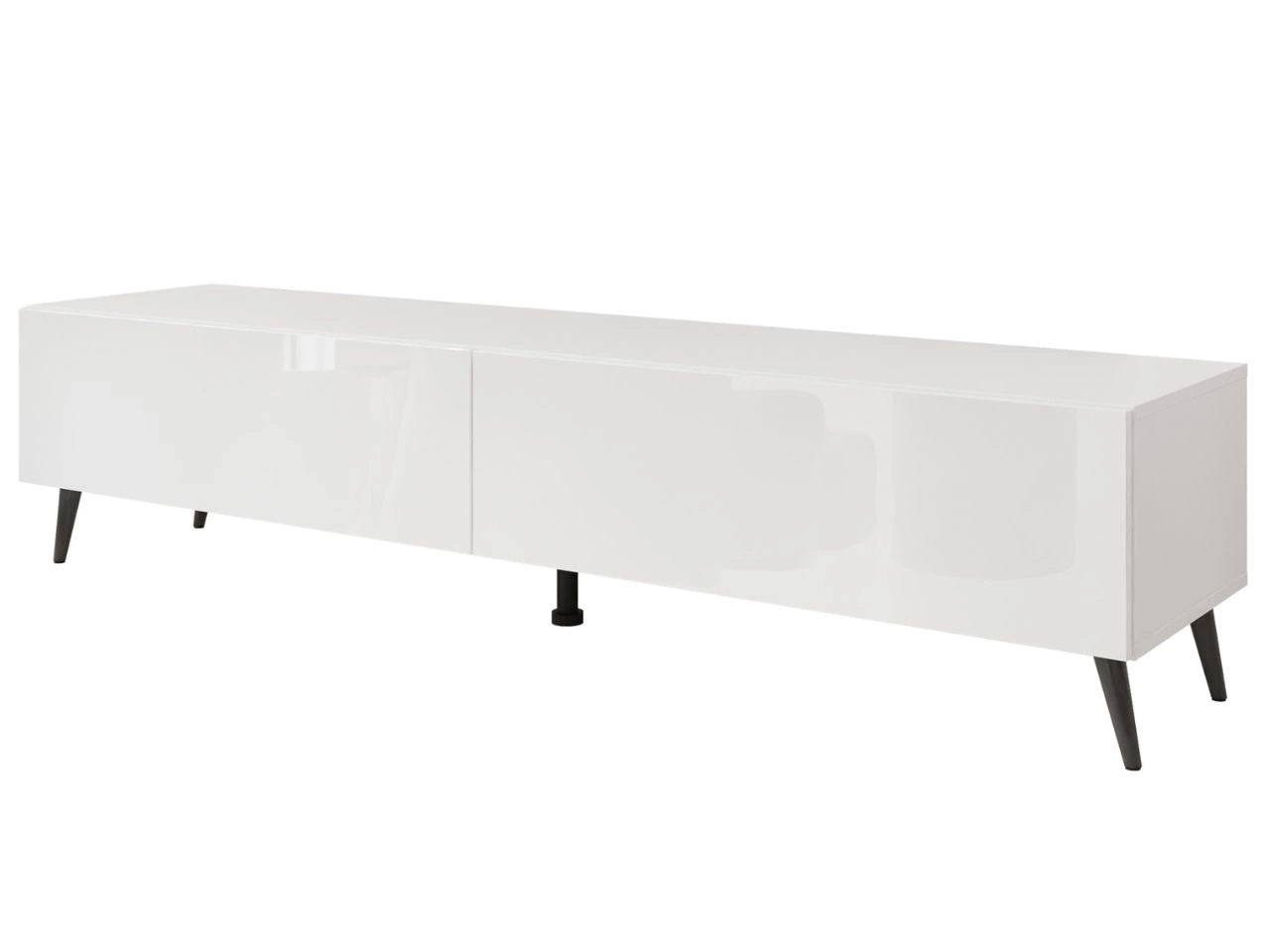 TV-Lowboard mit Türen auf Schwarzen Metallbeinen 175 cm mit LED-Beleuchtung Sorelle Weiß Hochglanz
