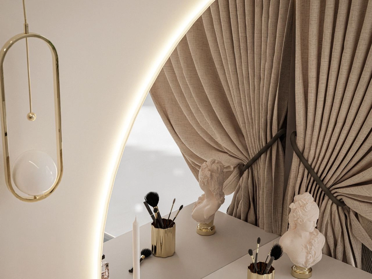 Kollektion Clarette – elegante Spiegel in links- und rechtsseitiger Ausführung sowie stilvolle Toilettentische in verschiedenen Varianten. Die charakteristische, abgerundete Form und die dezente Beleuchtung verleihen dem Interieur eine moderne und zugleich behagliche Atmosphäre. Dank vielfältiger Konfigurationsmöglichkeiten passt sich die Kollektion ideal an Schlafzimmer, Ankleidezimmer oder Badezimmer an.