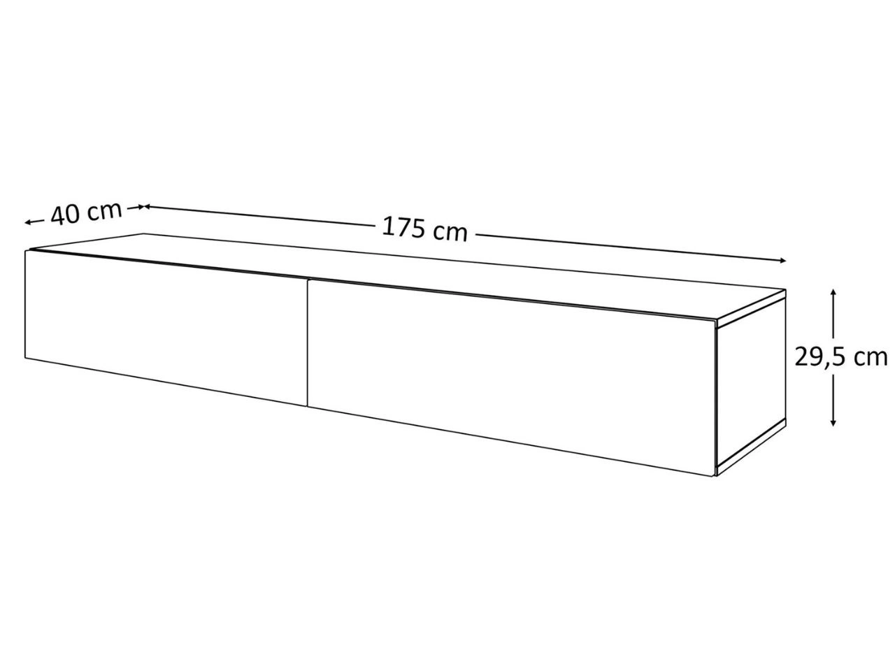 Die hängende Wohnwand Sorelle besteht aus drei Elementen in identischen Maßen – ein Element wird horizontal, die beiden anderen vertikal montiert. Alle Teile bestehen aus einer hochwertigen laminierten Platte; die Kanten sind mit ABS-Kantenumleimer geschützt, um Kratzer und kleine mechanische Beschädigungen zu verhindern. Jedes Element besitzt zwei Türen, die sich auf zwei Arten montieren lassen (bei den vertikalen Korpussen rechts/links öffnend, beim horizontalen nach unten/oben öffnend). Das Öffnen erfolgt über das Push-to-Open-System (drücken zum Öffnen). Zusätzlich verhindern Gasdruckfedern ein unkontrolliertes Absinken und Zuschlagen der Klappen.