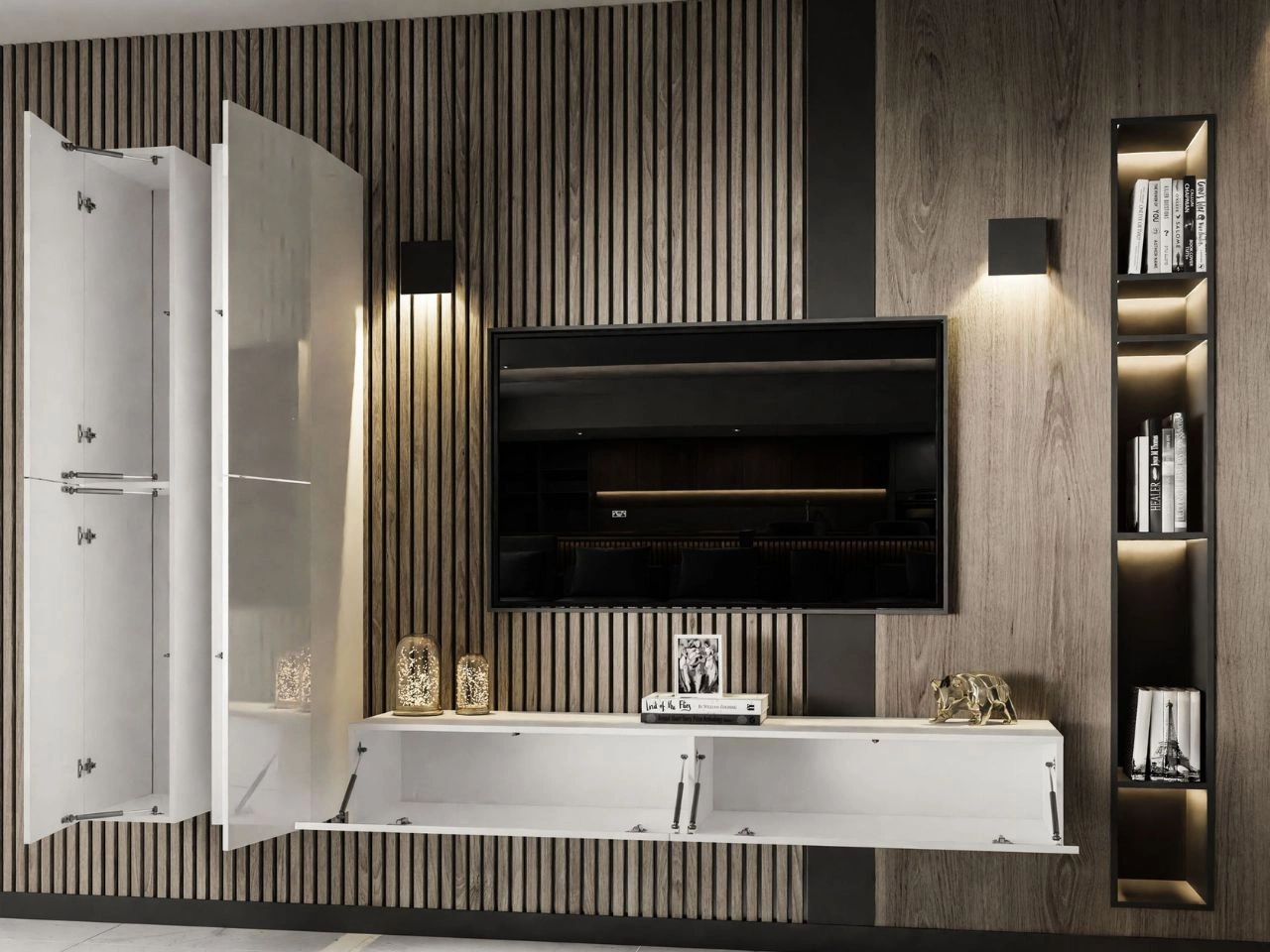 Hängende Wohnwand für das Wohnzimmer Sorelle Weiß Hochglanz