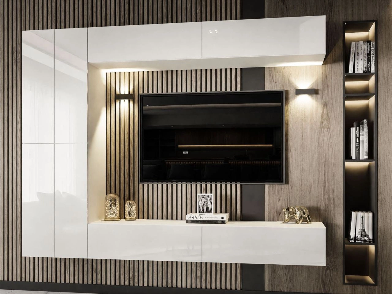 Hängende TV-Wohnwand für das Wohnzimmer Sorelle Weiß Hochglanz
