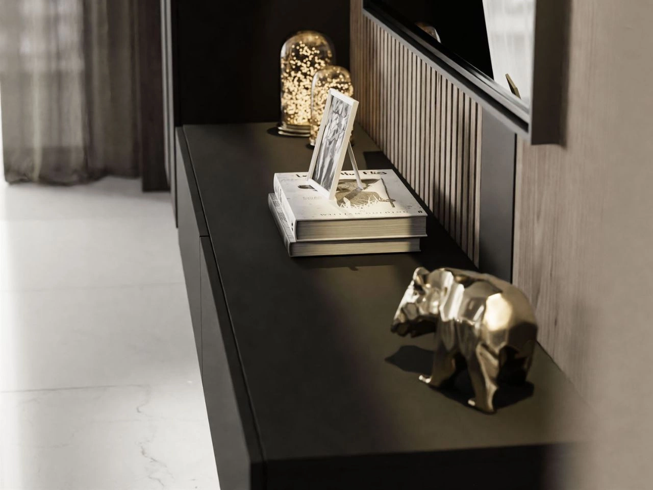 Die Möbelkollektion Sorelle umfasst trendige TV-Lowboards und Wohnwand-Sets, mit denen Sie Ihren Wohnraum im Handumdrehen modernisieren. Erhältlich in zwei Dekoren: mattschwarz und weißer Hochglanz. In Kombination mit einer großen Auswahl verschiedener Beinvarianten ergeben sich zahlreiche Personalisierungsmöglichkeiten – ideal für ein breites Publikum.