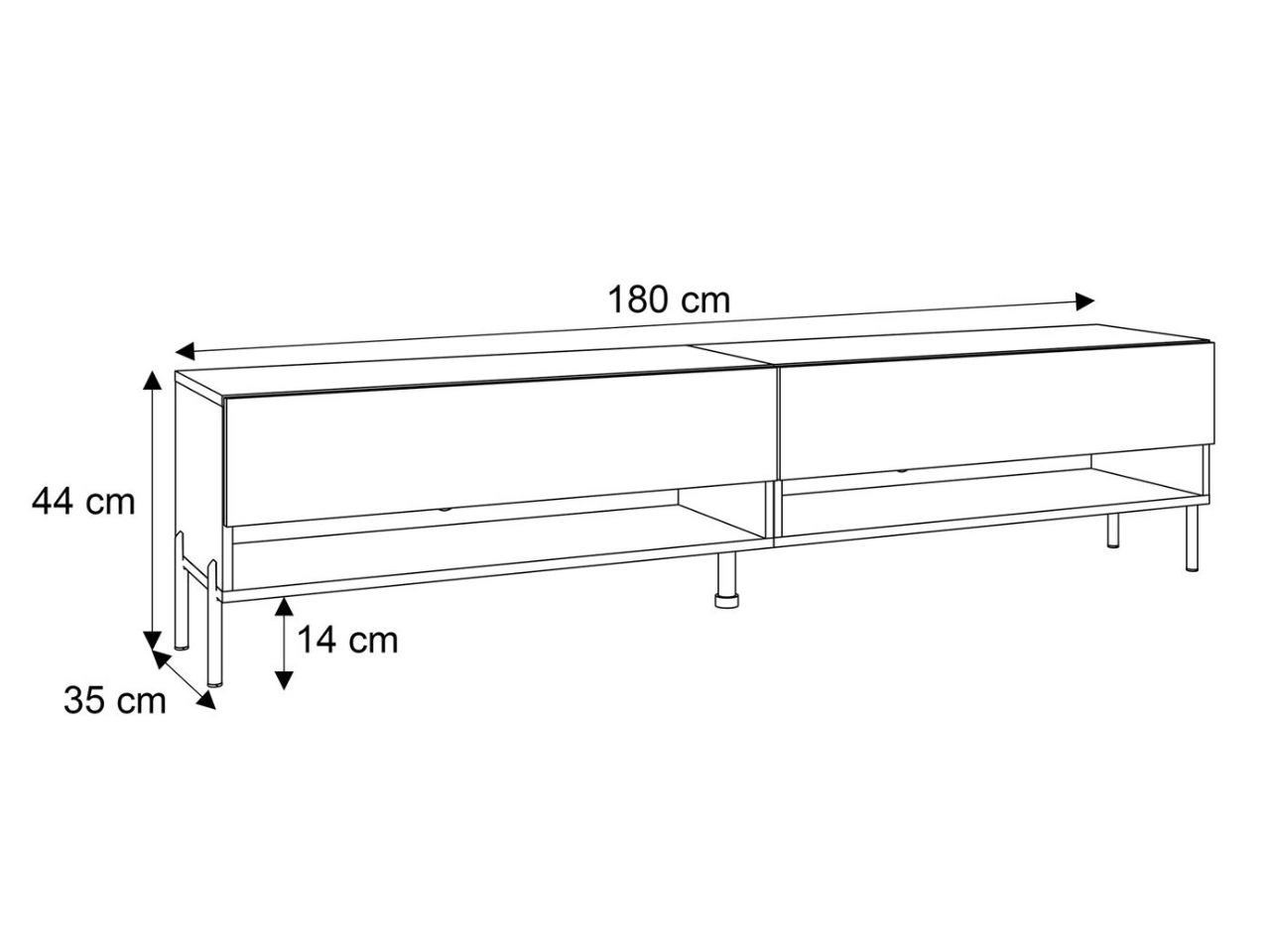 Aus hochwertiger, laminierter Möbelplatte gefertigt und mit widerstandsfähigen ABS-Kanten veredelt, überzeugt dieses TV-Lowboard durch Stabilität und eine lange Lebensdauer. Die goldenen Metallbeine unterstreichen den modernen Charakter, während die LED-Beleuchtung in kühlem Weiß die klare Linienführung hervorhebt und eine stilvolle Atmosphäre schafft.