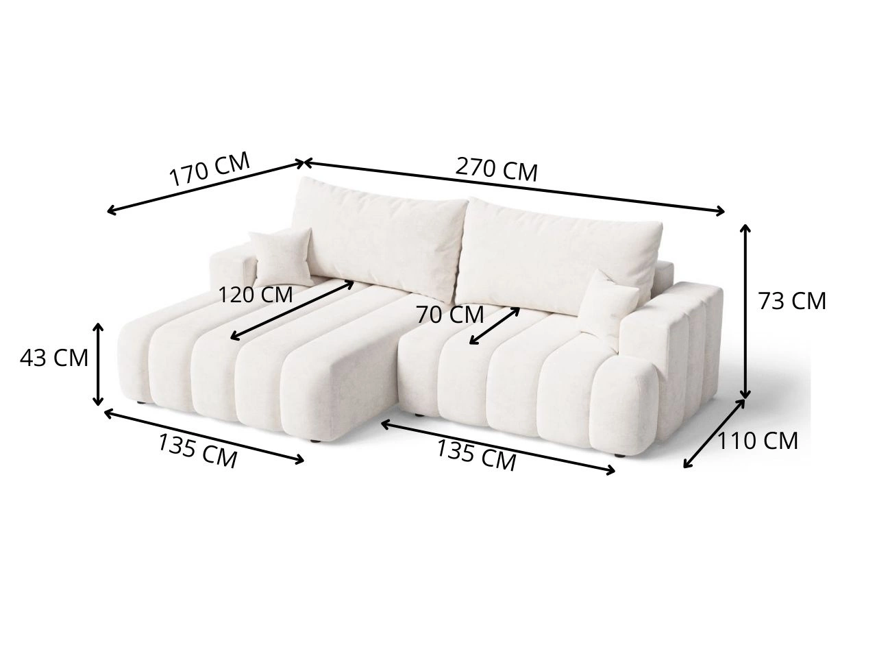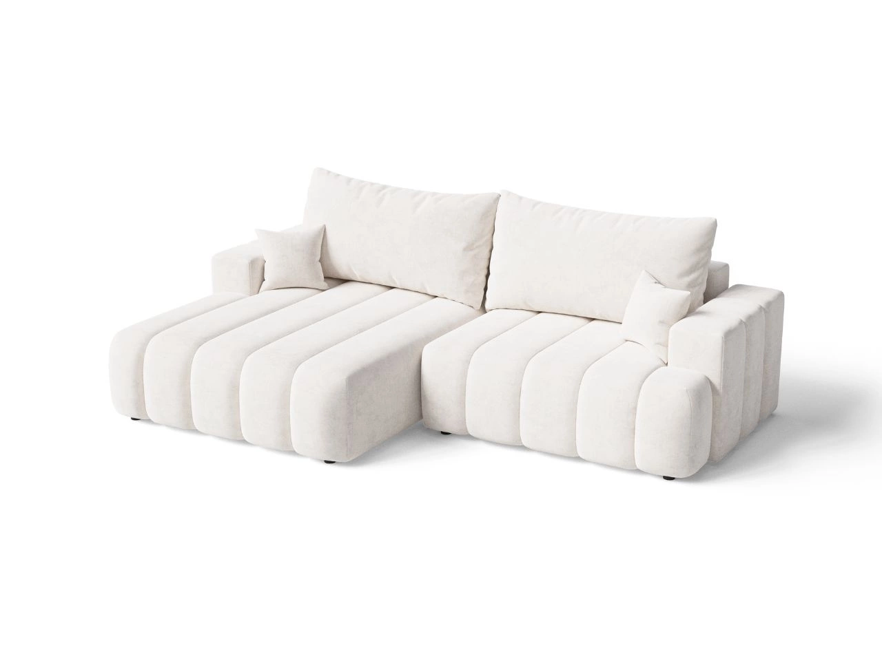 Ecksofa L-Form Links mit Schlaffunktion und Bettkasten Caleo Creme