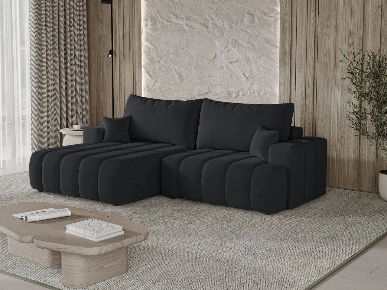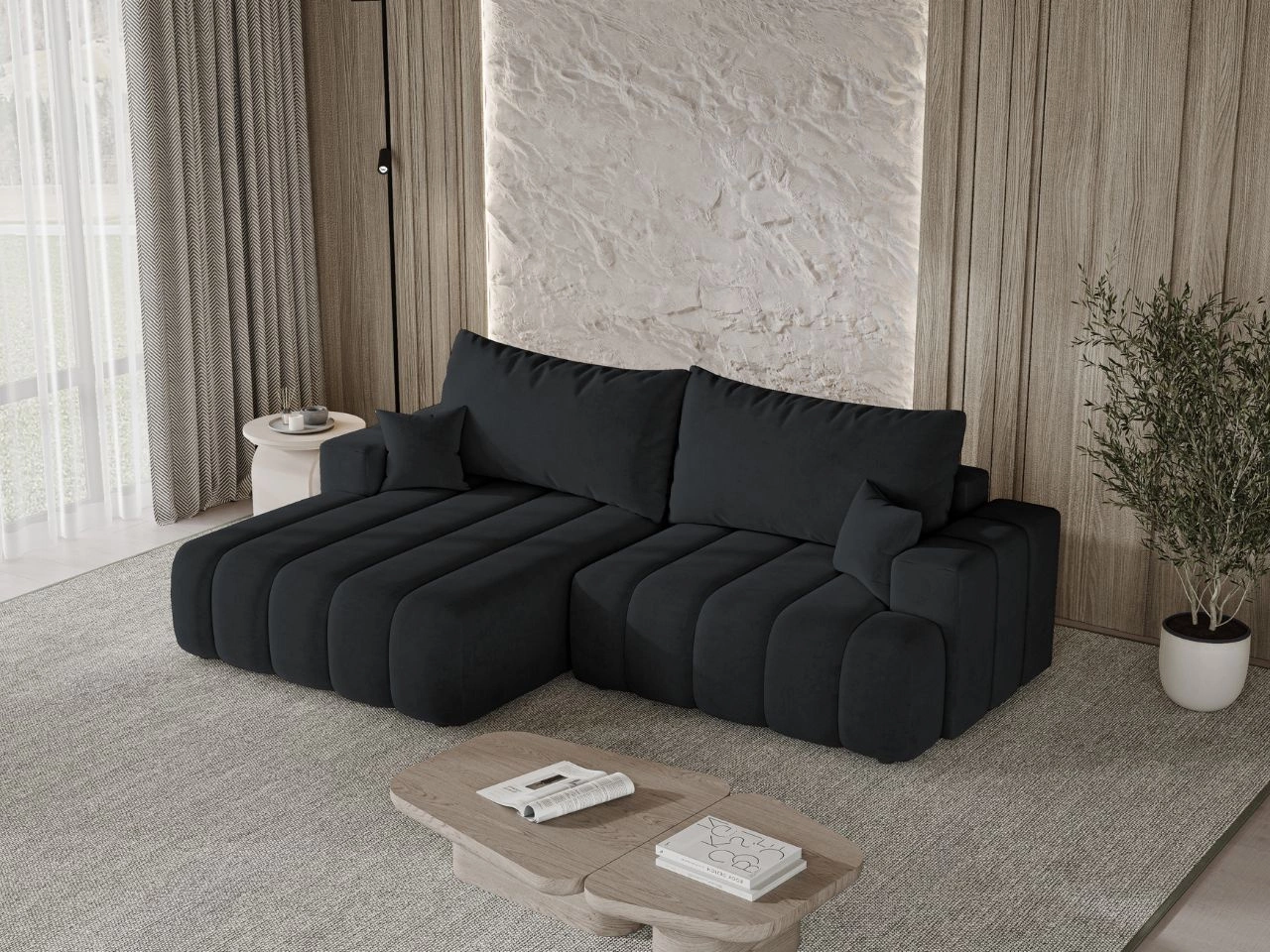 Ecksofa L-Form Links mit Schlaffunktion und Bettkasten Caleo Schwarz