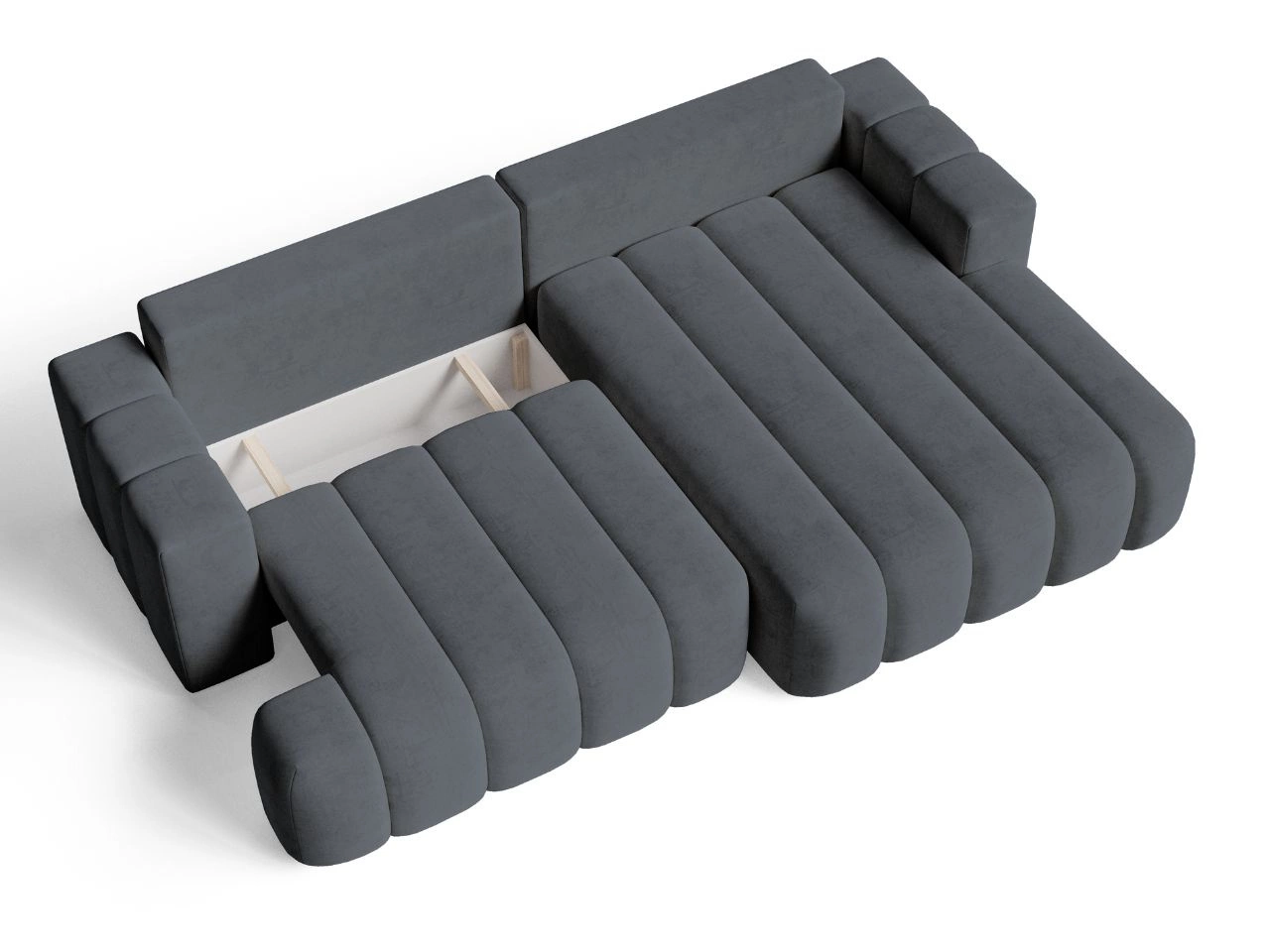 Sofa ist mit einer praktischen Schlaffunktion ausgestattet, durch die es sich im Handumdrehen in ein komfortables Bett verwandeln lässt. Ein weiterer Vorteil ist der geräumige Bettkasten, der zusätzlichen Stauraum bietet und für Ordnung im Wohnzimmer sorgt.