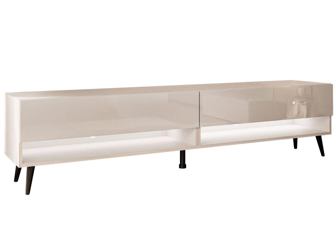 TV-Schrank für das Wohnzimmer 180 cm mit schwarzen Beinen und LED-Beleuchtung Aurelie Kaschmir Hochglanz