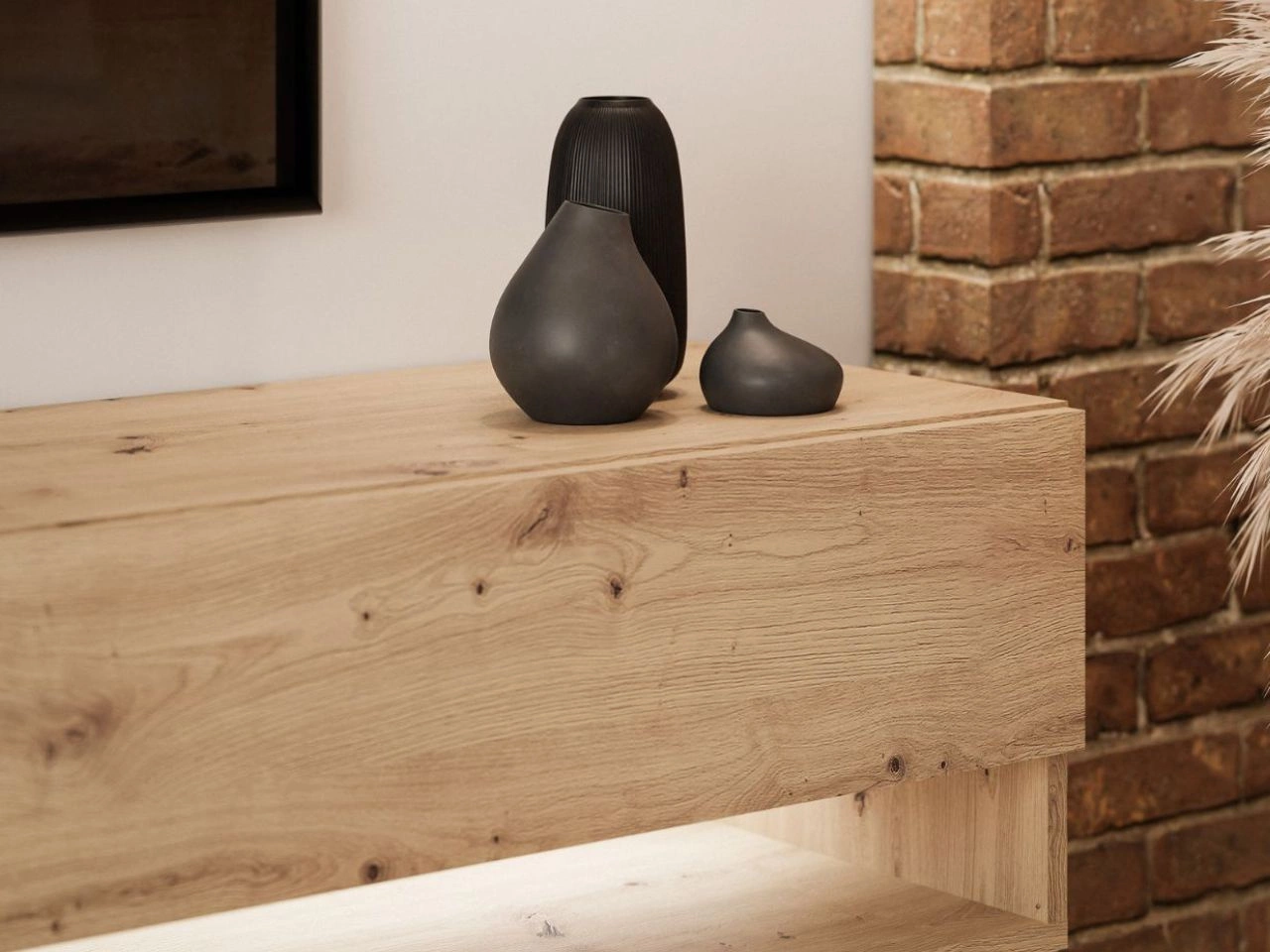 Du ziehst an: TV-Schrank 180 cm mit LED-Beleuchtung und schwarzen Beinen Aurelie Artisan Eiche