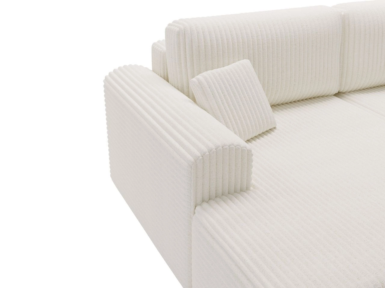 Ecksofa Belvio ist ein elegantes Polstermöbel, das modernes Design mit hoher Funktionalität verbindet. Die schlichte, geometrische Form wird durch sanft abgerundete Armlehnen ergänzt, was dem Sofa eine subtile Note verleiht. Der Bezug mit markanten, vertikalen Steppungen macht das Ecksofa zu einem besonderen Blickfang und passt perfekt in stilvolle Wohnräume.