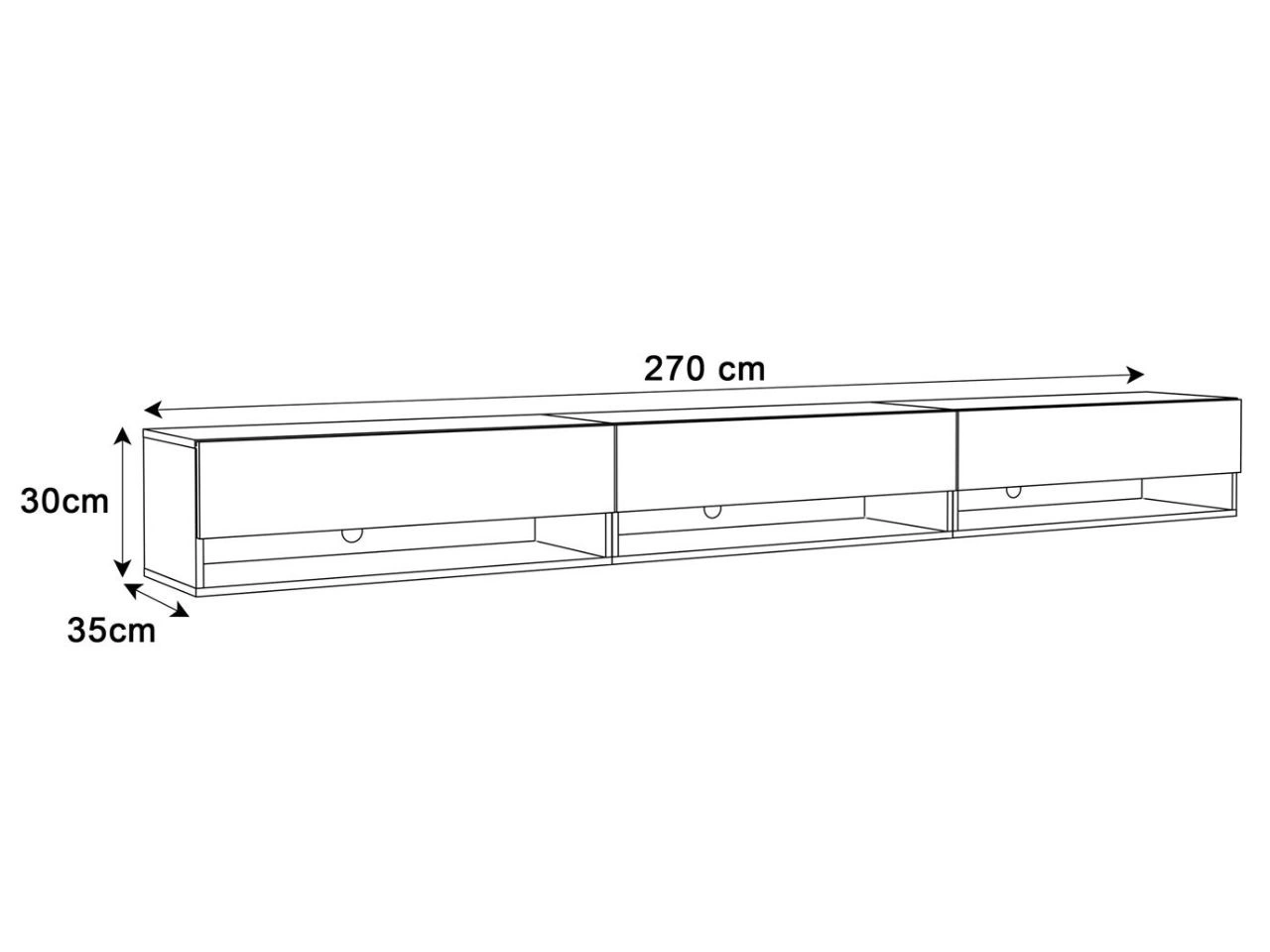 Hänge TV-Schrank 270 cm für Wohnzimmer mit LED-Beleuchtung Aurelie Artisan Eiche