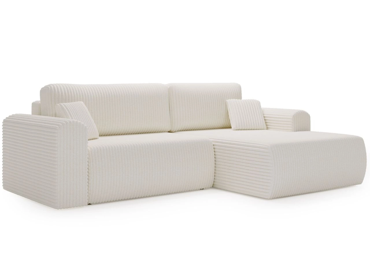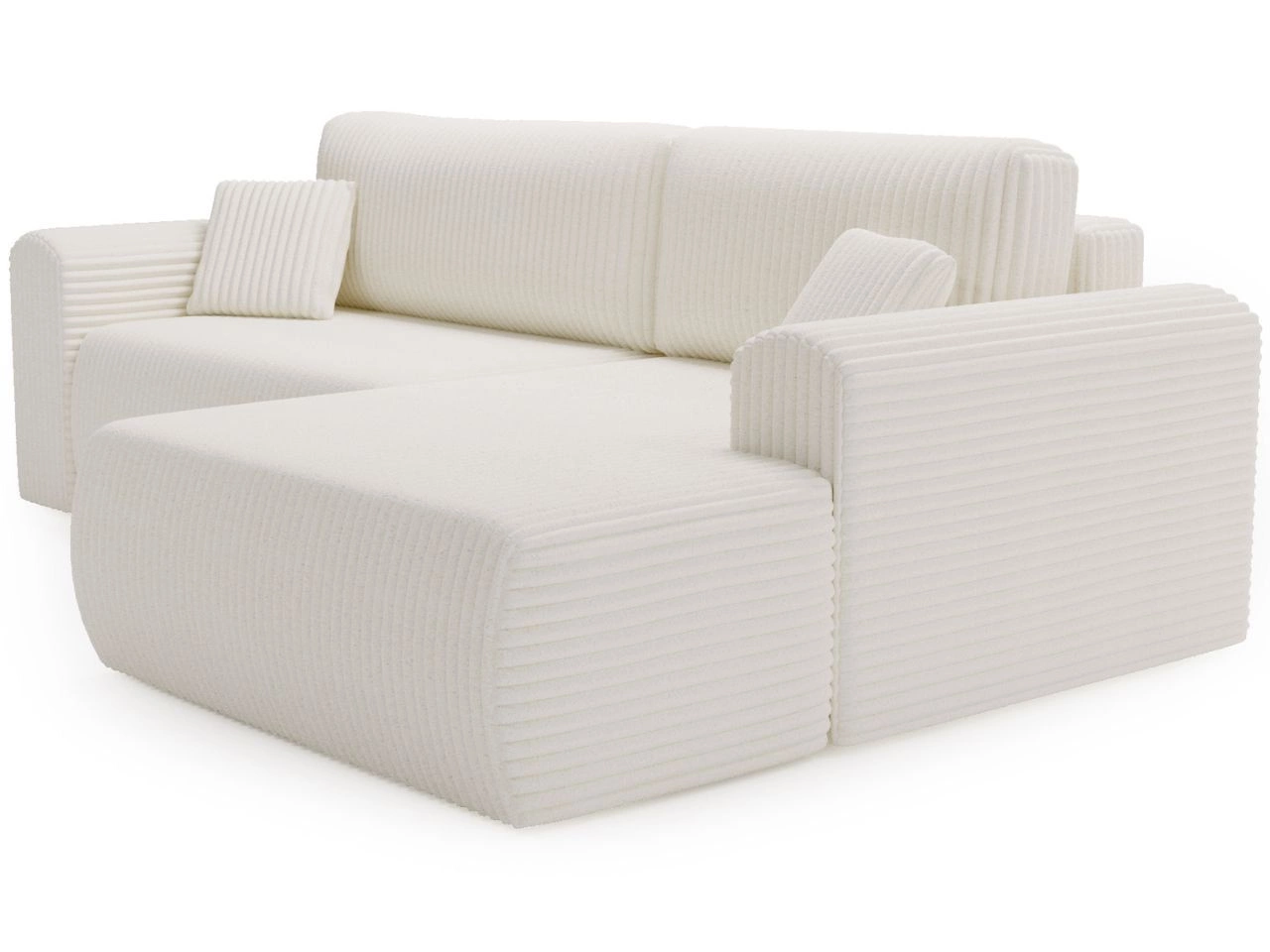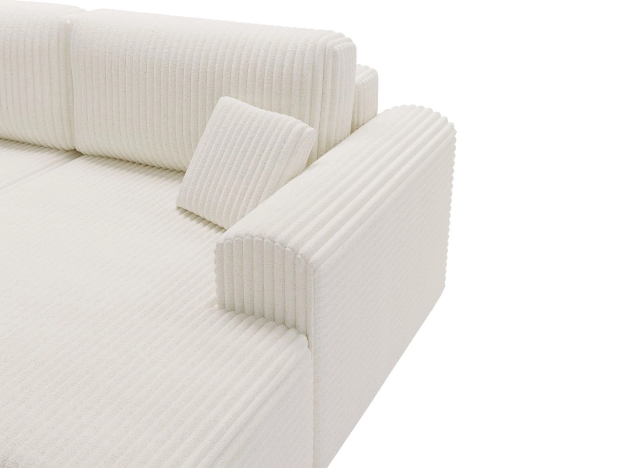 Ecksofa Belvio ist ein elegantes Polstermöbel, das modernes Design mit hoher Funktionalität verbindet. Die schlichte, geometrische Form wird durch sanft abgerundete Armlehnen ergänzt, was dem Sofa eine subtile Note verleiht. Der Bezug mit markanten, vertikalen Steppungen macht das Ecksofa zu einem besonderen Blickfang und passt perfekt in stilvolle Wohnräume.