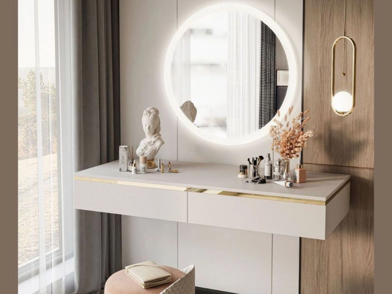 Hängende Schminktisch Glamour mit Schubladen, Spiegiel und LED-Beleuchtung Evare Kaschmir