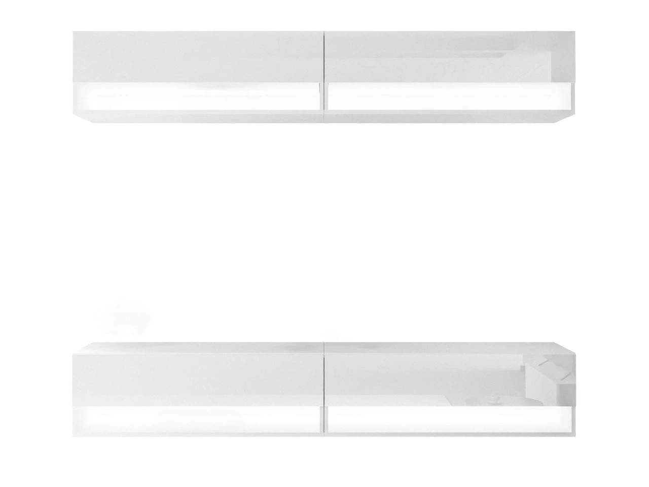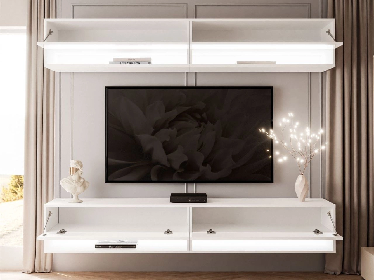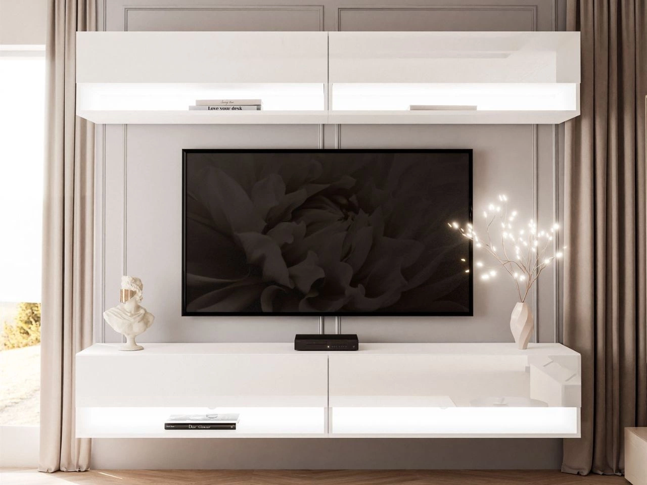 Hängende Wohnwand mit LED-Beleuchtung Aurelie Weiß Hochglanz