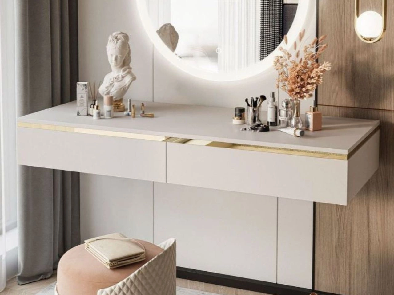 Funktionalität des Modells Evare wird durch praktische, geräumige Schubladen hervorgehoben, die sich unter der Tischplatte befinden und viel Platz zur Aufbewahrung kleiner Gegenstände, Accessoires oder Dokumente bieten. So bleibt die Oberfläche stets ordentlich und aufgeräumt.