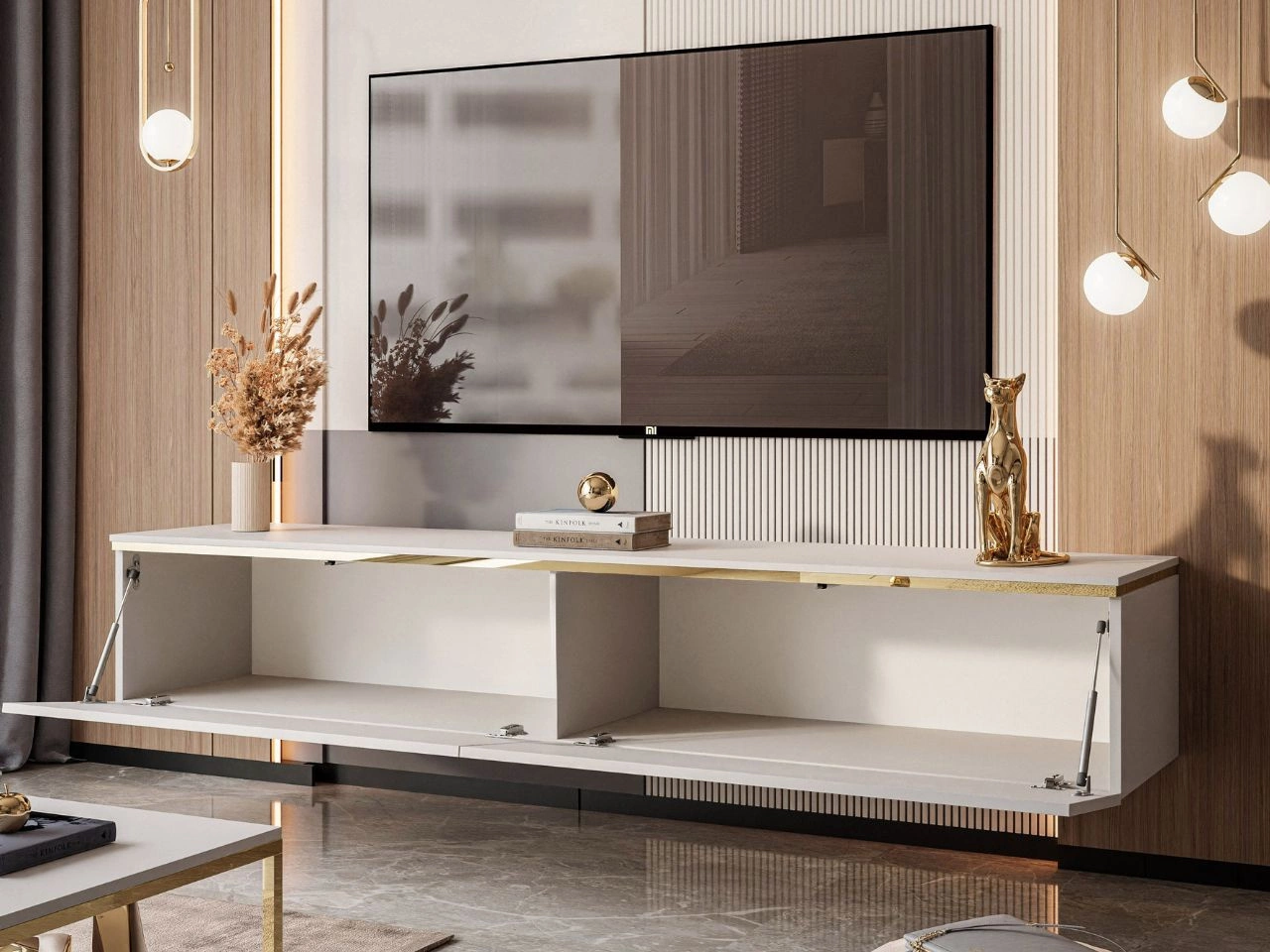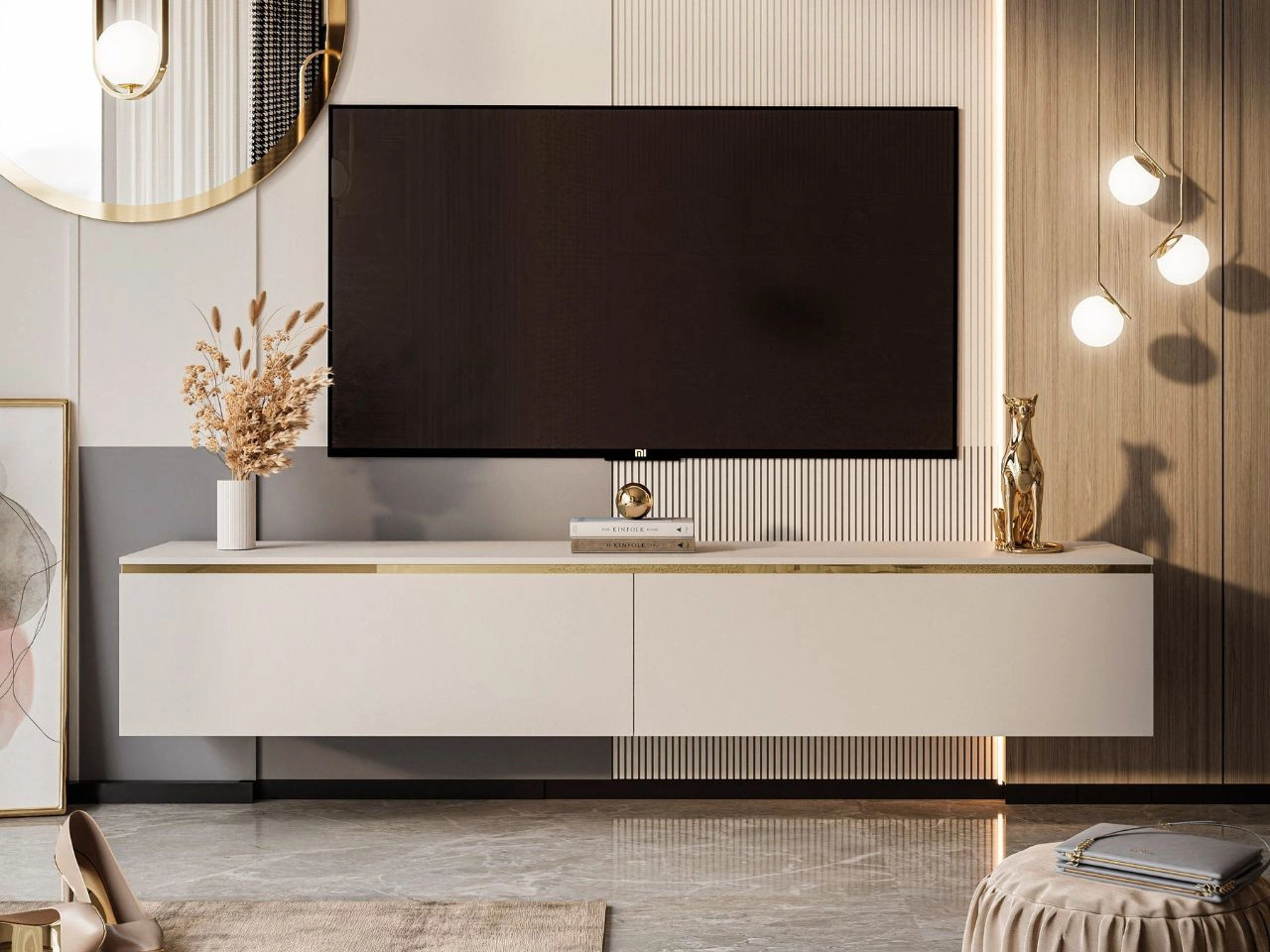 Hänge TV-Schrank 180 cm Glamour mit LED-Beleuchtung für Wohnzimmer Evare Kaschmir
