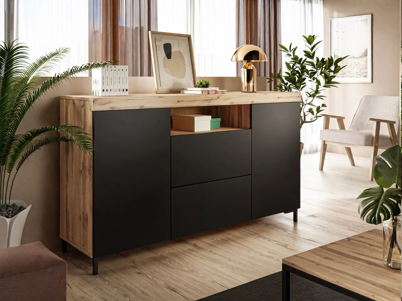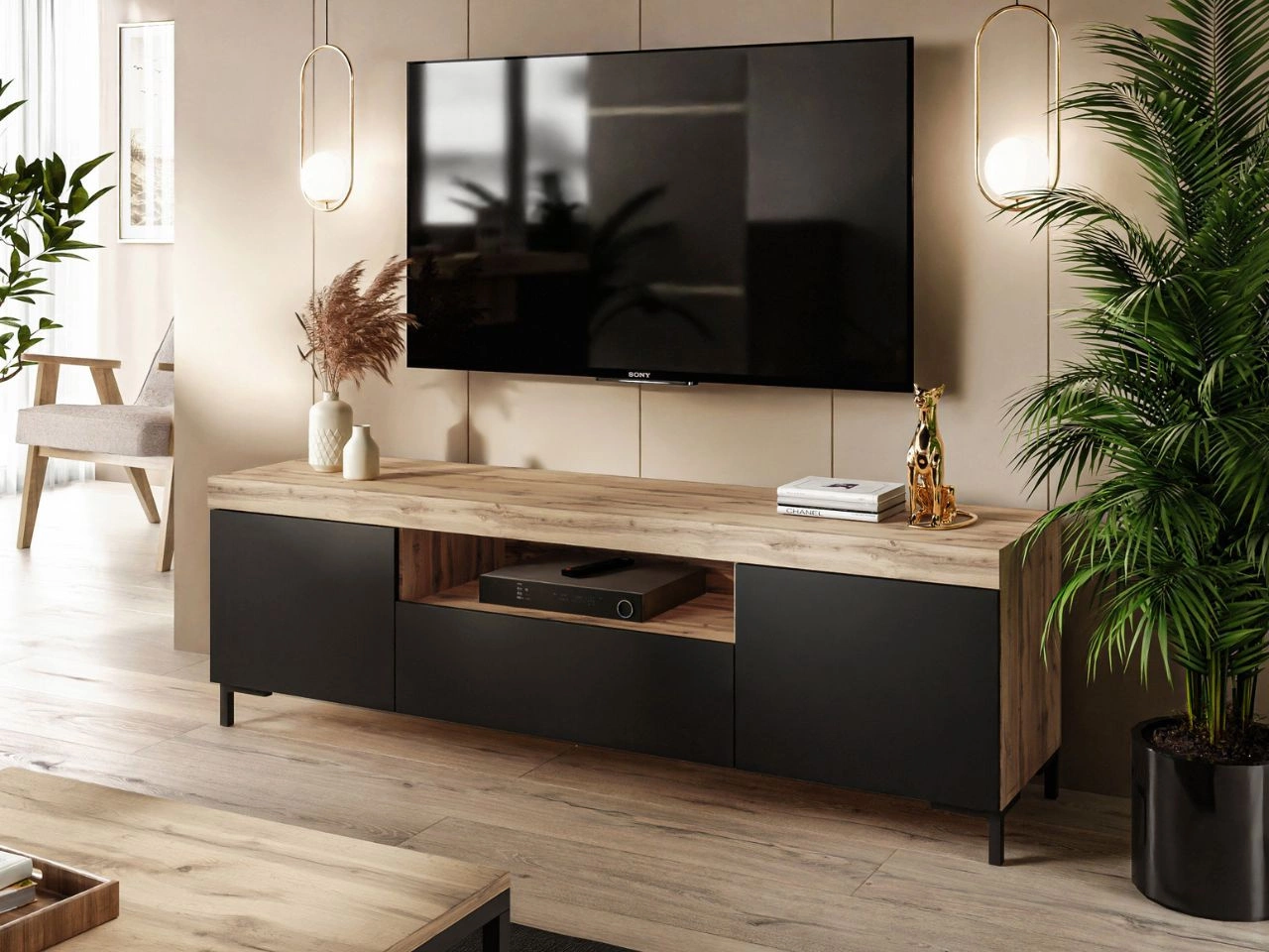 Wohnzimmer-Set – TV-Schrank und Kommode auf schwarzen Füßen Asumi Schwarz und Eiche Wotan