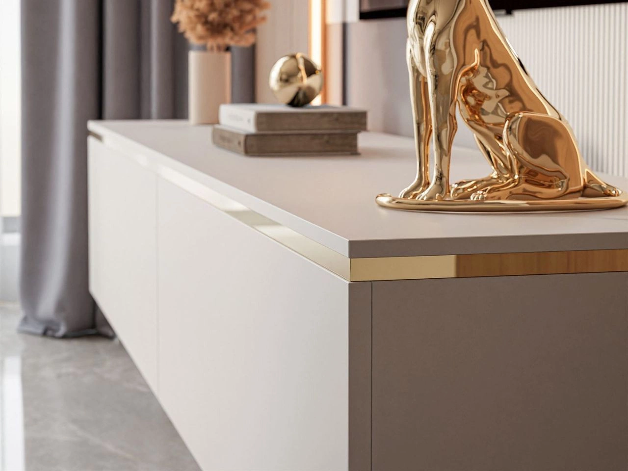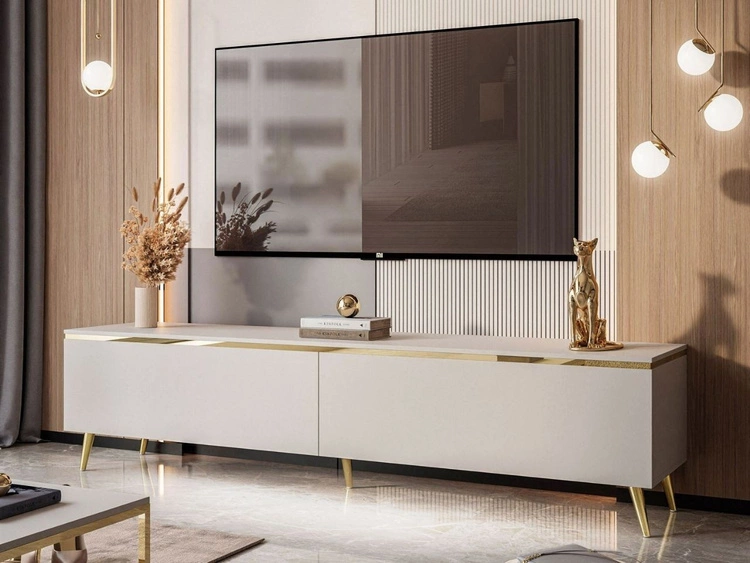 TV-Schrank 180 cm mit goldenen Metallbeinen und LED-Beleuchtung Evare Kaschmir