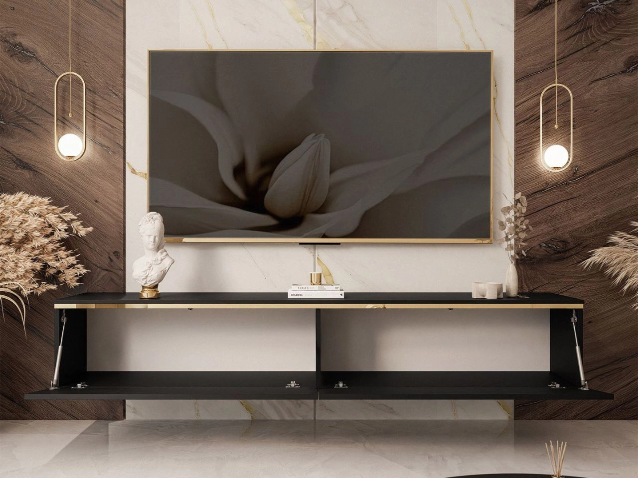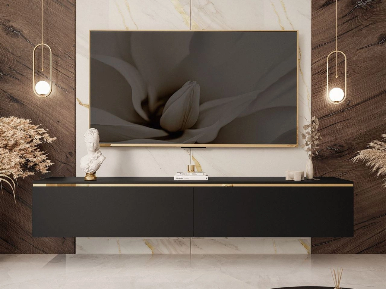 Hänge TV-Schrank 180 cm Glamour mit LED-Beleuchtung für Wohnzimmer Evare Schwarz matt