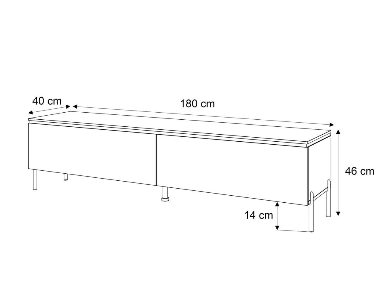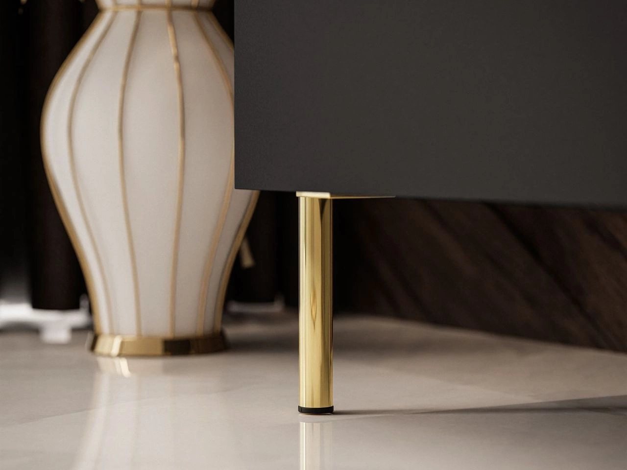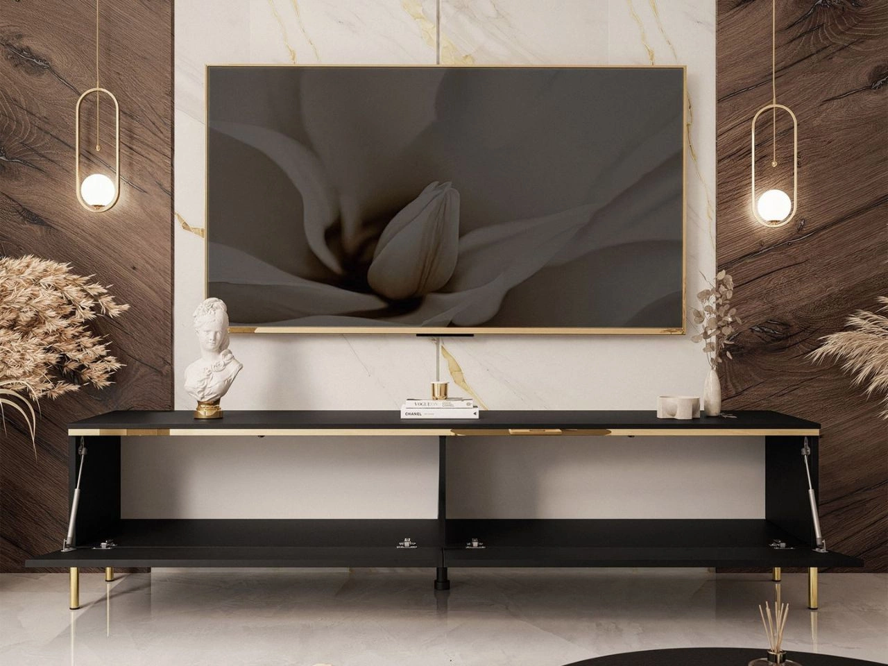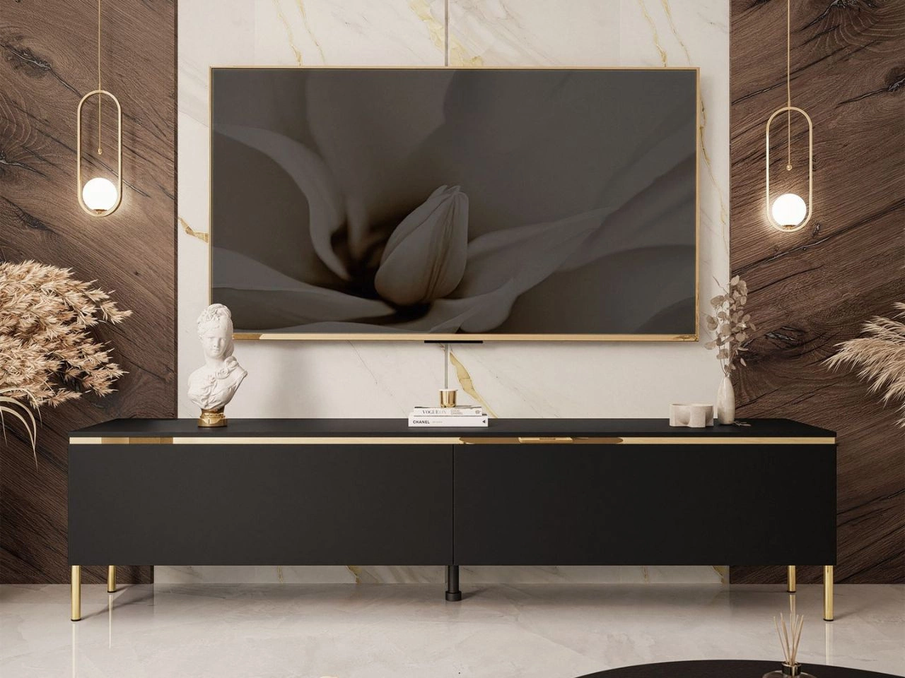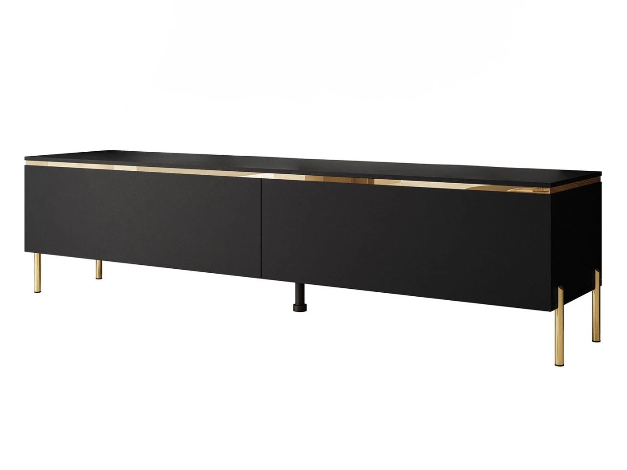 TV-Schrank 180 cm Glamour mit goldenen Metallbeinen Evare Schwarz matt