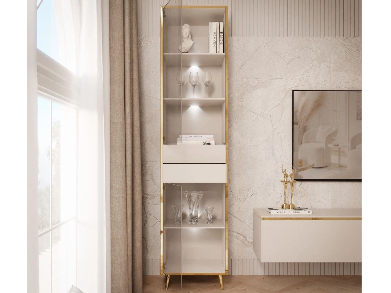 Glasvitrine mit Schubladen im Glamour-Stil mit LED-Beleuchtung Evare Kaschmir