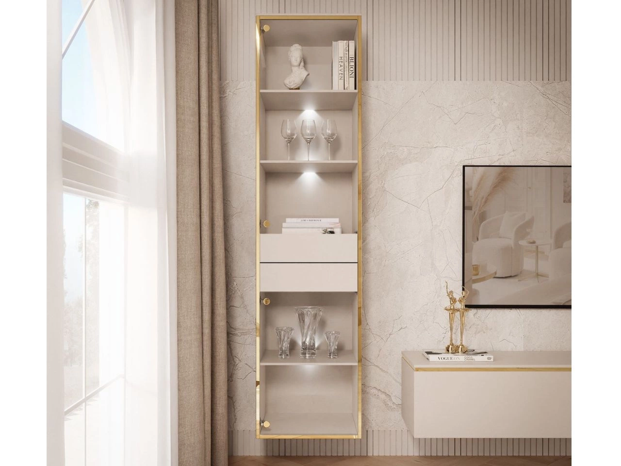 Du ziehst an: Hängende Glasvitrine mit LED-Beleuchtung im Glamour-Stil Evare Kaschmir