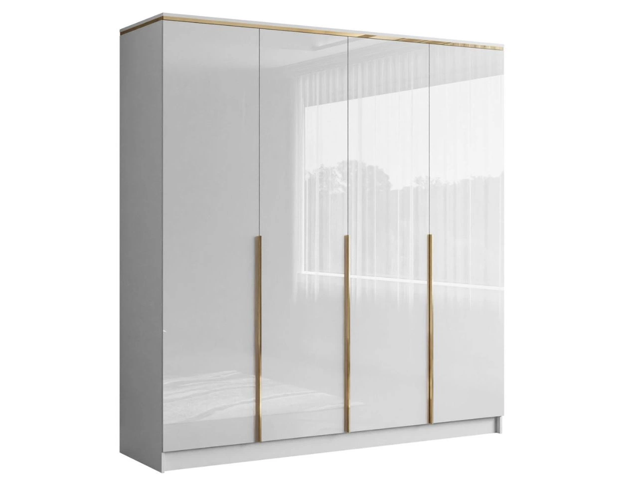 Kleiderschrank mit Drehtüren, Schubladden und goldenen Griffen Evare Weiß Hochglanz
