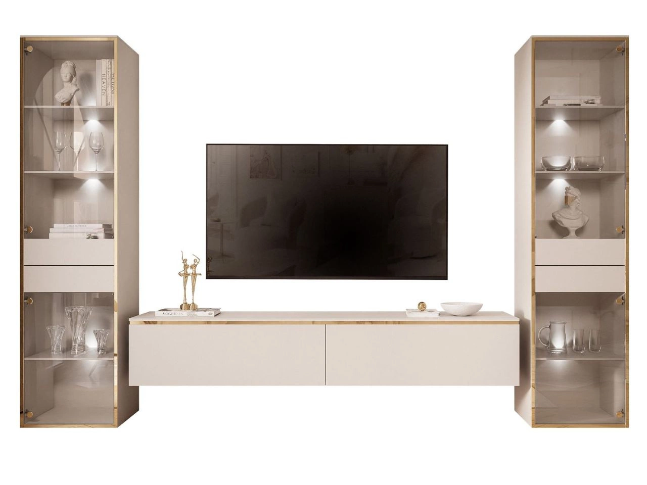 Du ziehst an: Wohnzimmer-Set mit zwei Vitrinen und LED-Beleuchtung im Glamour-Stil Evare Kaschmir