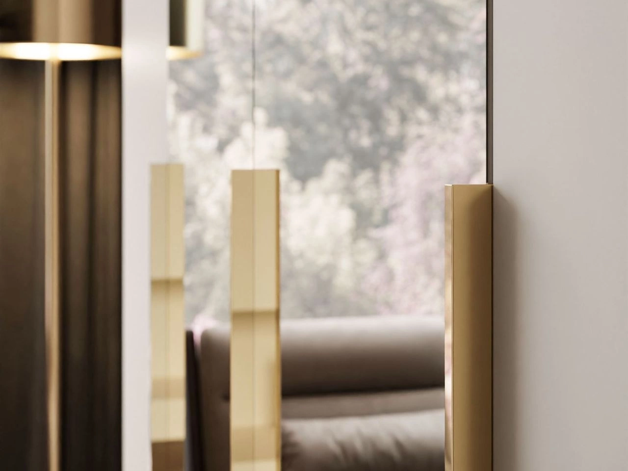 Drehtürenschrank Evare in Kaschmir vereint modernes Design mit maximaler Funktionalität und eignet sich perfekt für das Schlafzimmer oder die Ankleide. Matte Fronten und Korpus bilden eine harmonische Einheit, während der dekorative goldene Zierstreifen und die langen, vertikalen Griffe den luxuriösen Charakter des Möbelstücks unterstreichen und dem Raum besondere Eleganz verleihen. Ein zusätzlicher Vorteil sind die Spiegel auf den Fronten, die den Raum optisch vergrößern und den täglichen Komfort erhöhen.