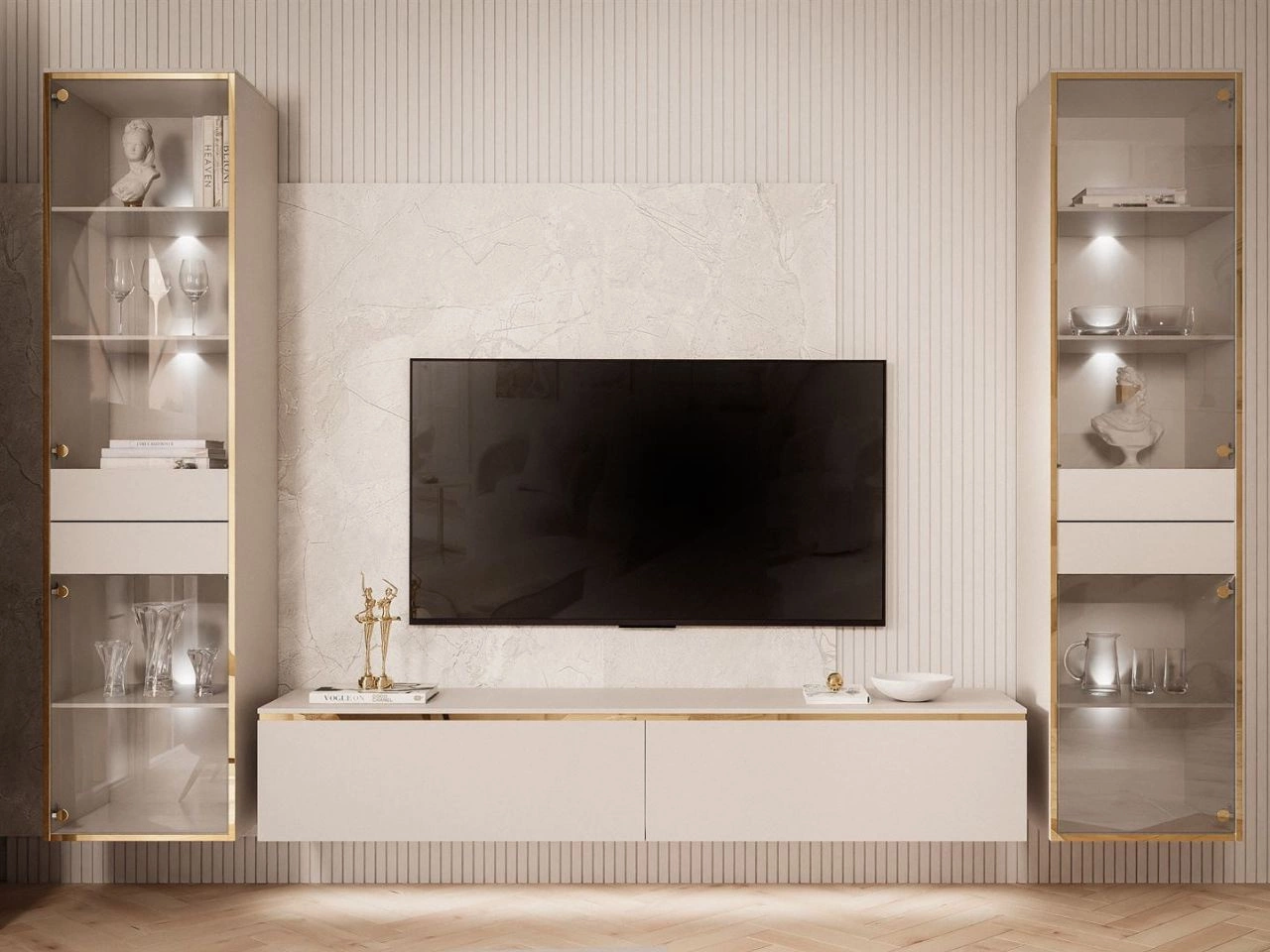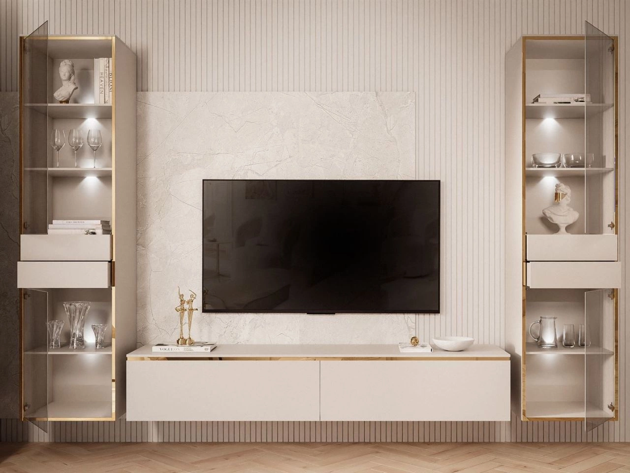 Hängendes Wohnzimmerset mit zwei Vitrinen und LED-Beleuchtung im Glamour-Stil Evare Kaschmir