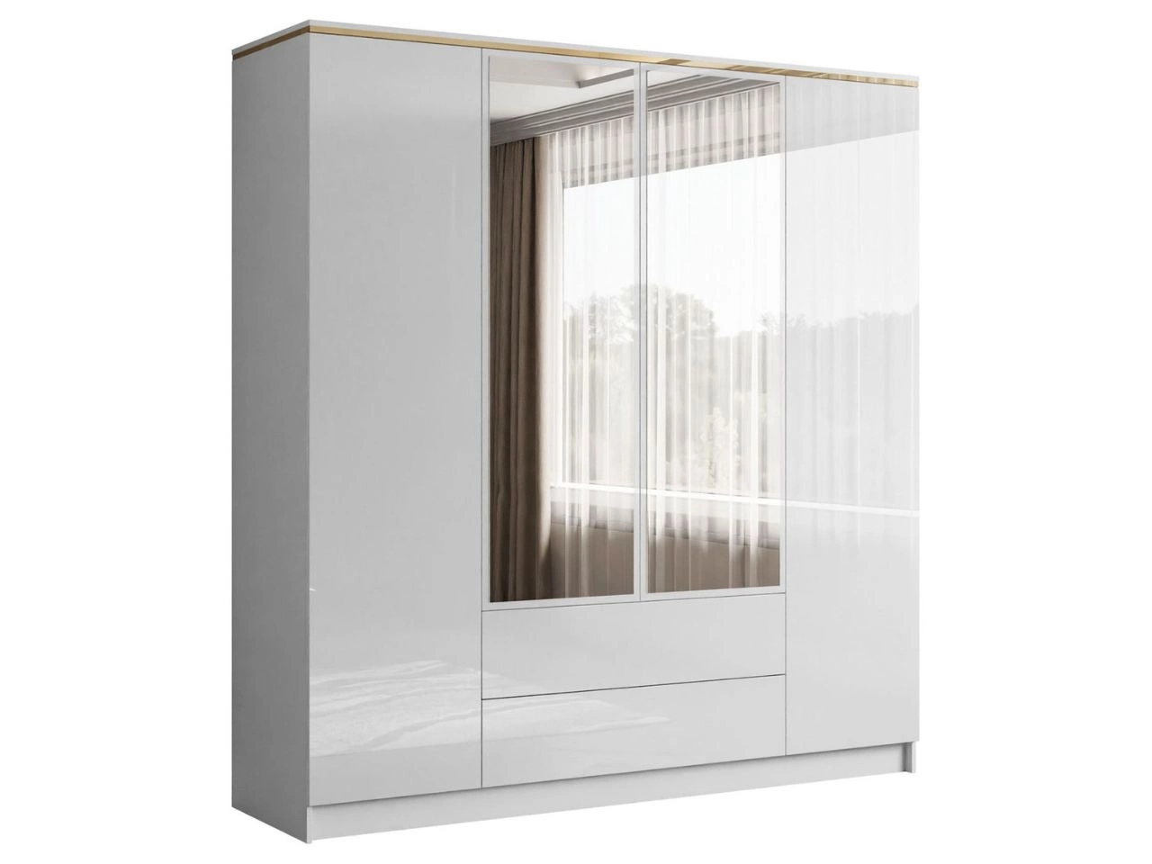Kleiderschrank mit Drehtüren, Schubladden und Spiegiel Evare Weiß Hochglanz