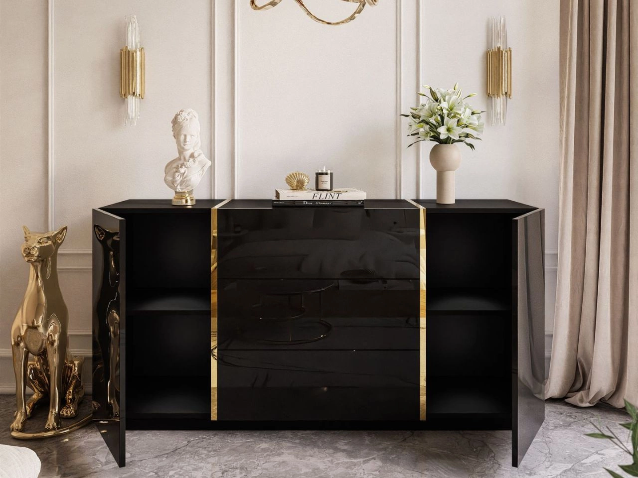 Kommode Lunelie vereint elegantes Design mit praktischen Funktionen. Drei geräumige Schubladen und zwei geschlossene Seitenschränke mit Einlegeböden bieten viel Platz zur Aufbewahrung von Kleidung, Dokumenten oder Accessoires. Ihre schlichte, zeitlose Form fügt sich ideal in moderne, minimalistische und glamouröse Einrichtungen ein und verleiht dem Raum Harmonie und Leichtigkeit.